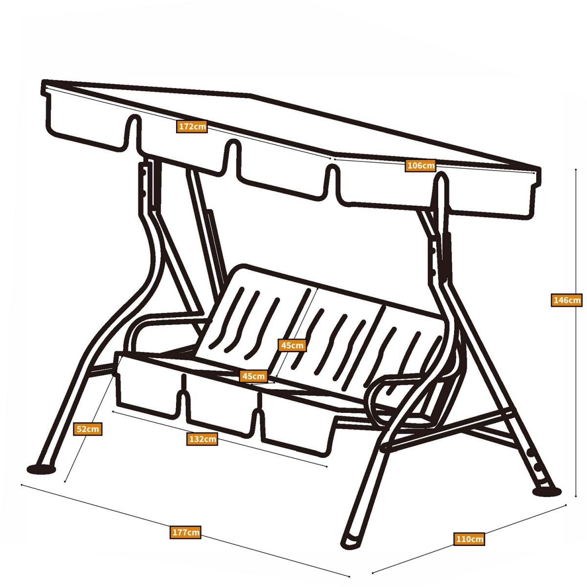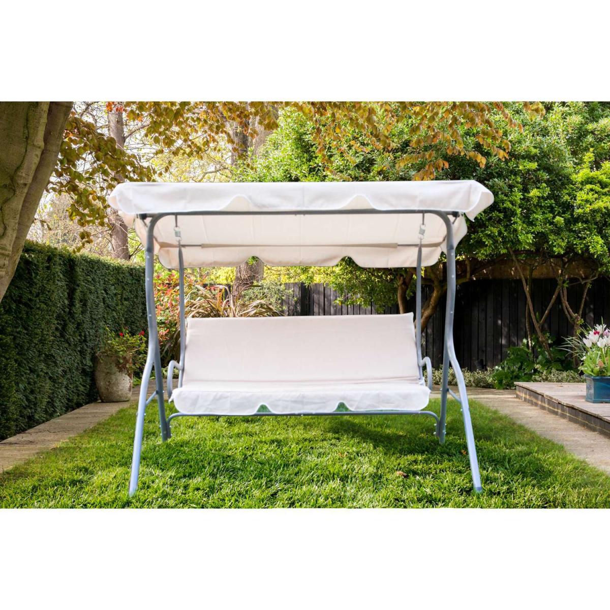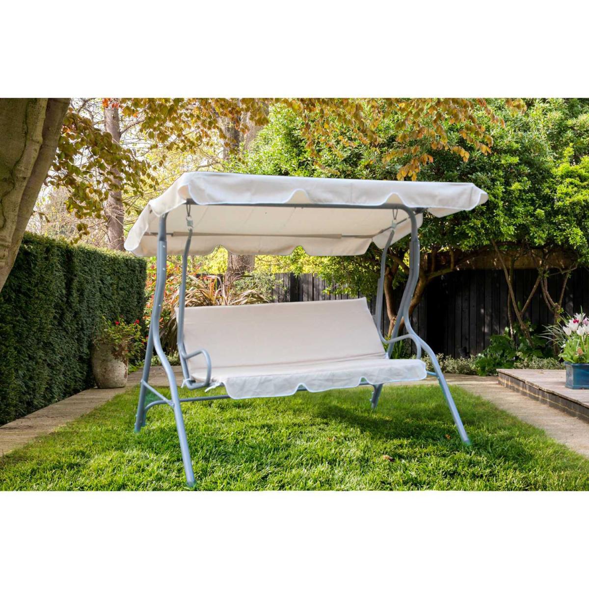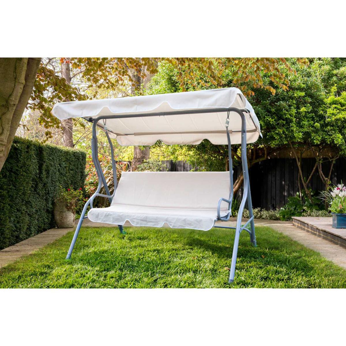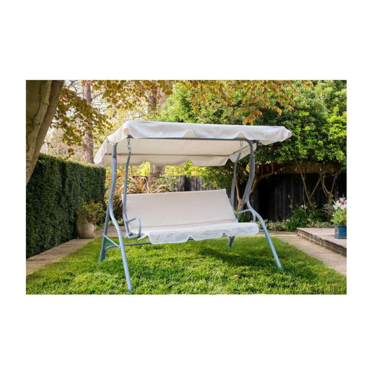 Garden Metal Swing Hammock 3 Seater Chair Bench - Beige