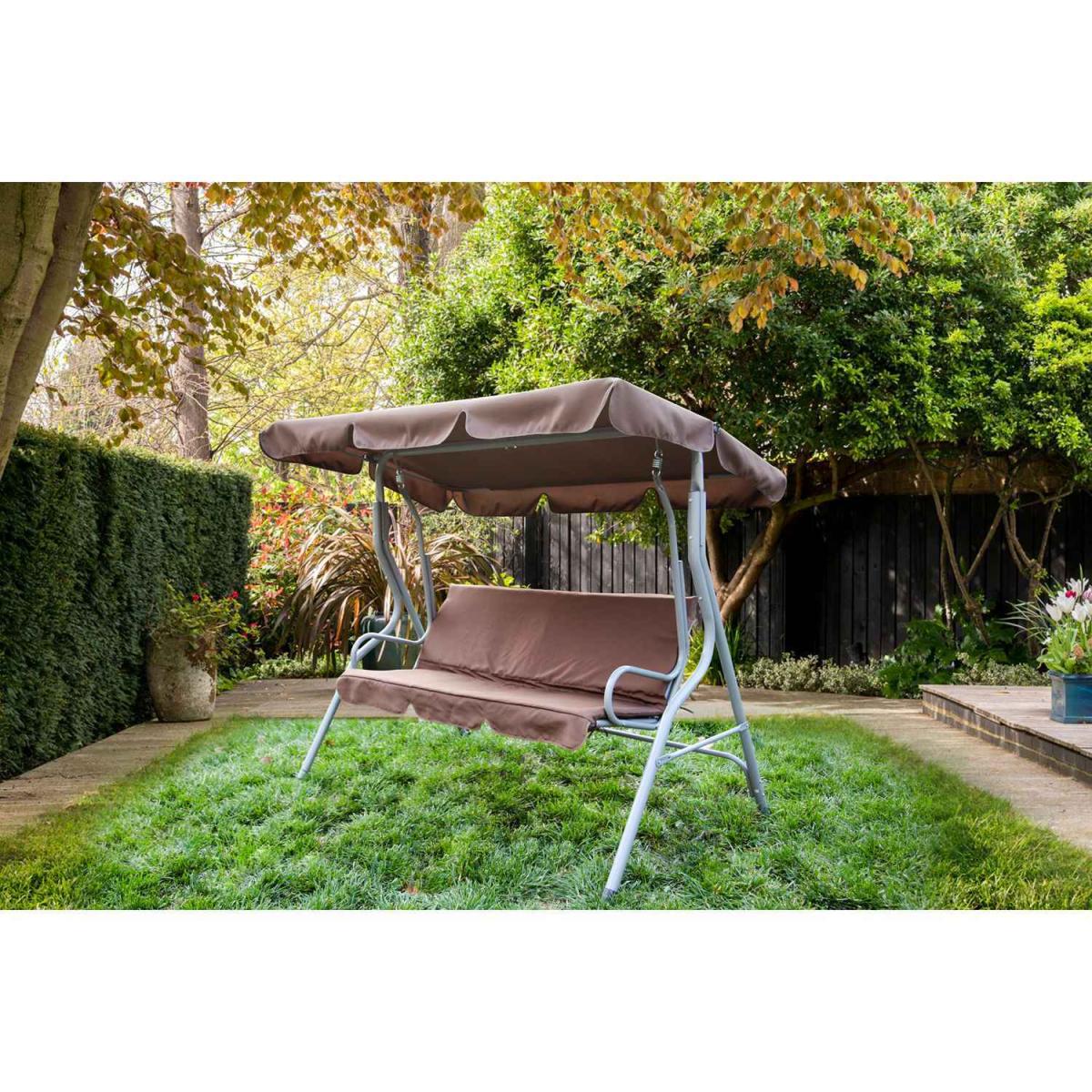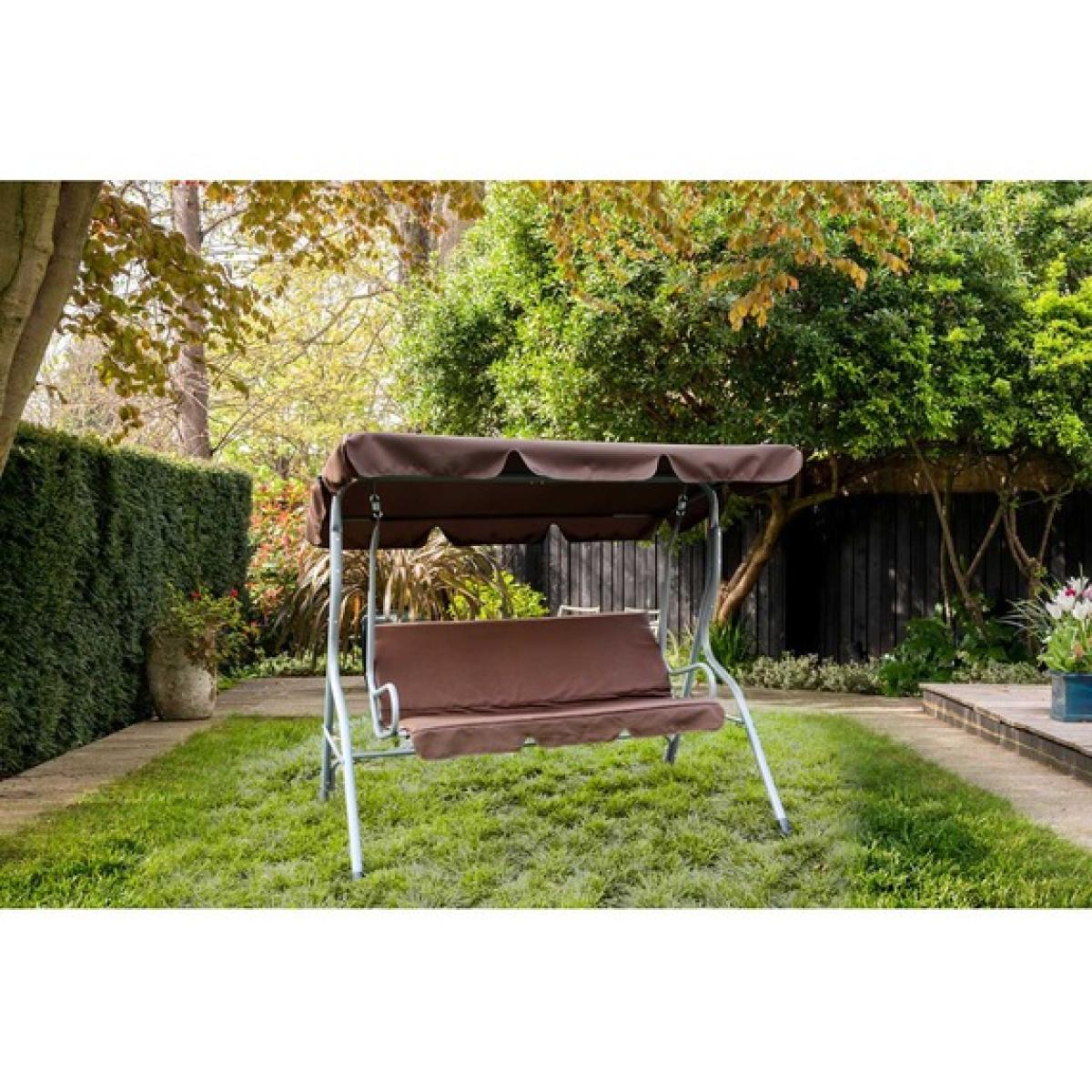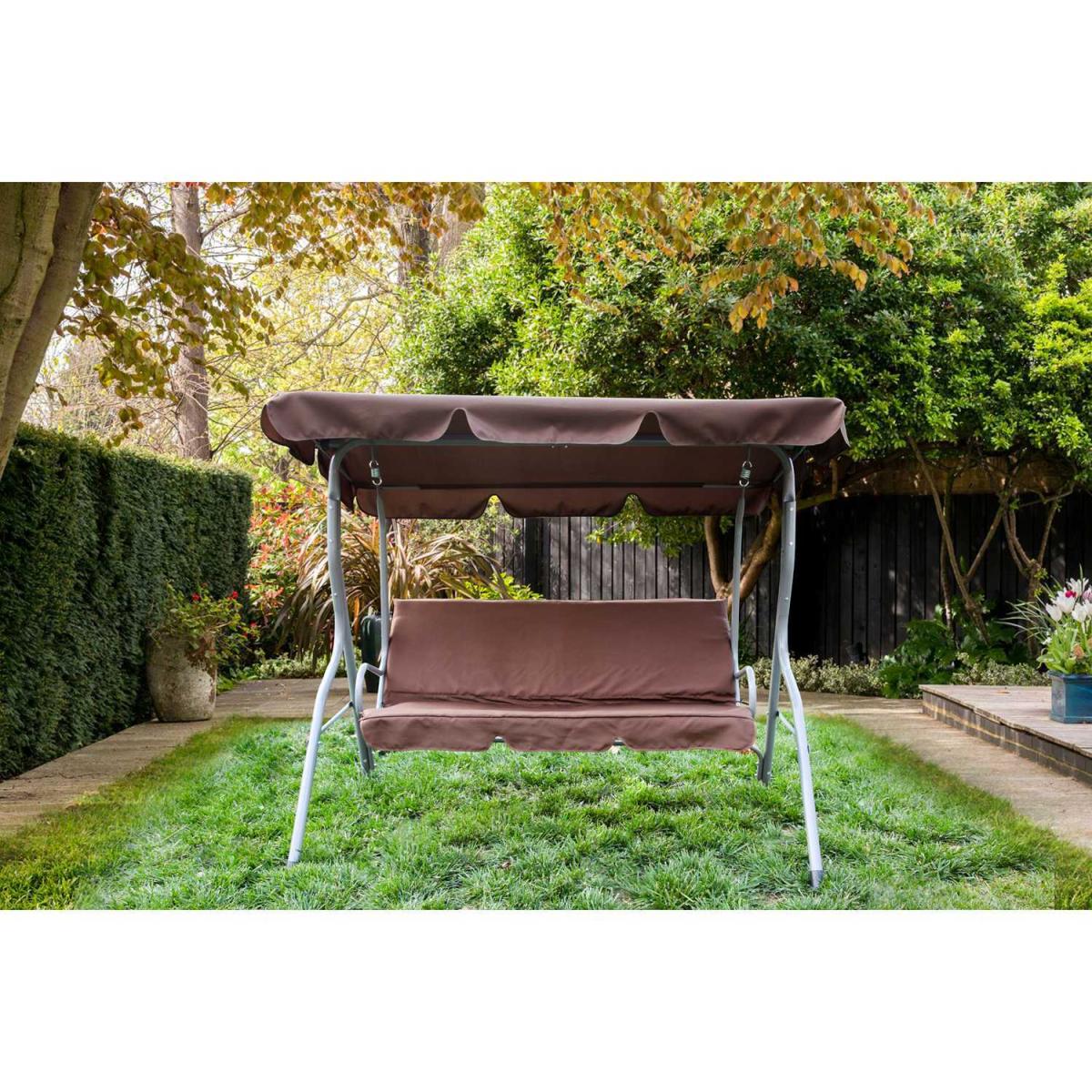 Garden Metal Swing Hammock 3 Seater Chair Bench - Brown
