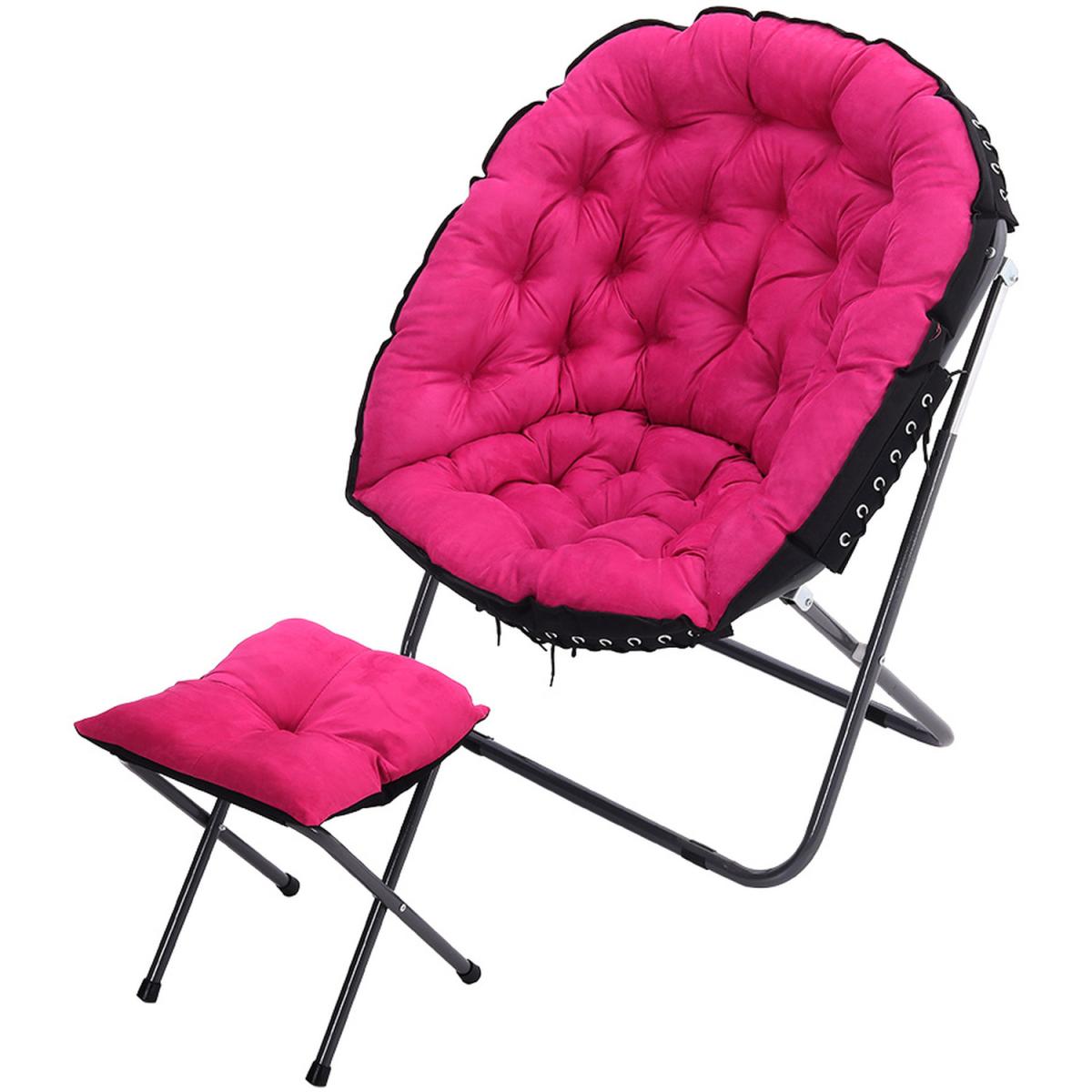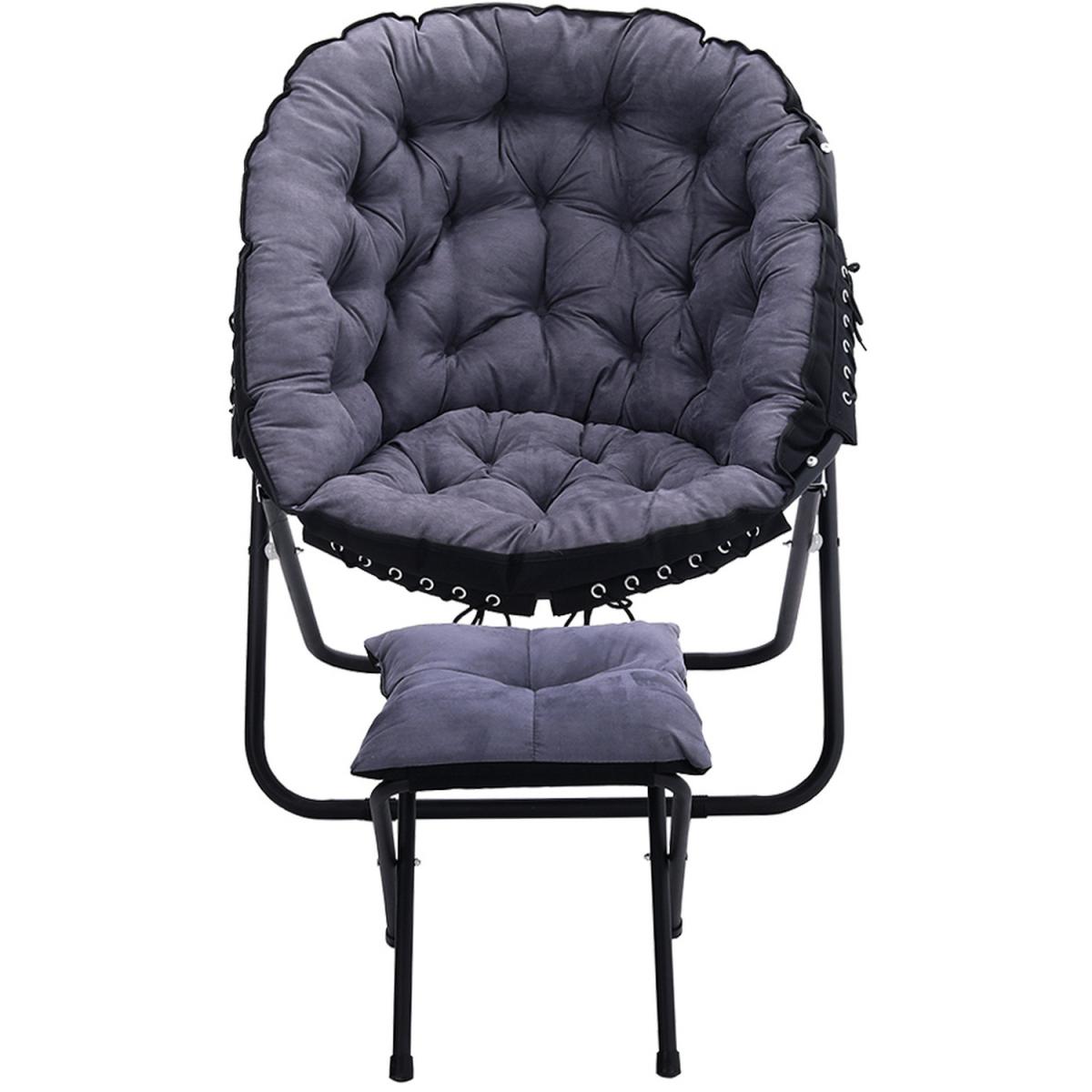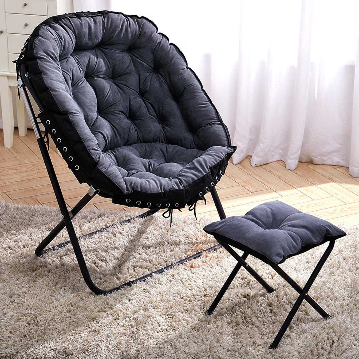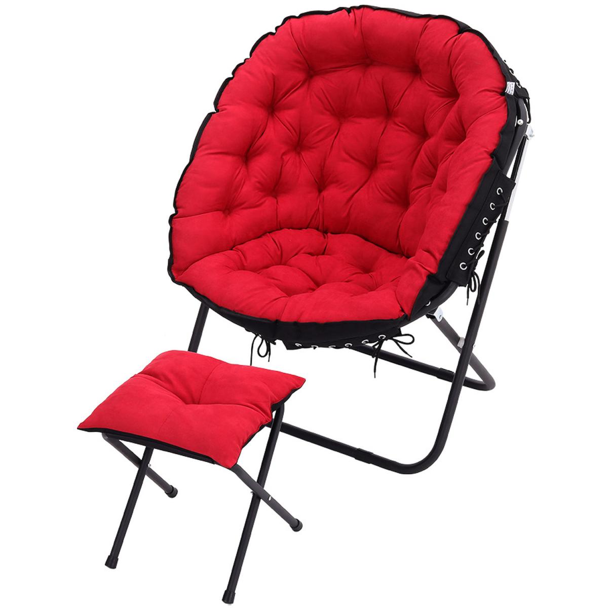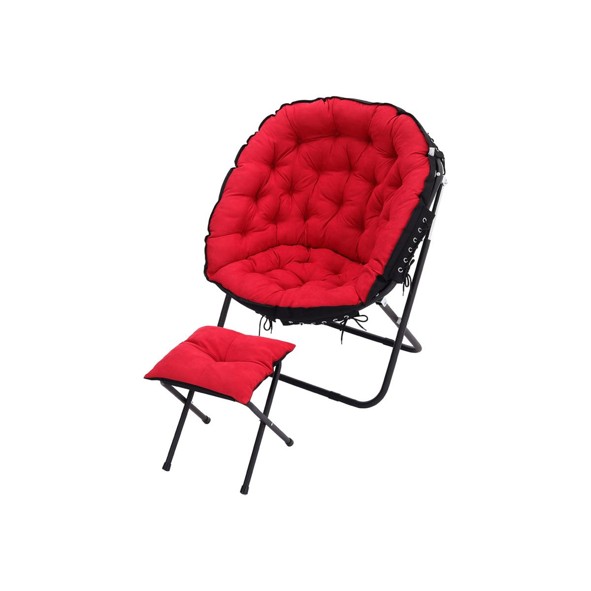 The camping moon chair is made of soft canvas fabric, the interior is filled with erect cotton and is elastic, giving you a warm, comfortable and breathable feel. High-strength steel frame, high-frequency coating, rustproof, corrosion-resistant. With footstool design, you can rest your feet up when you are enjoying your leisure time. Unique and ergonomic seat design gives you the best seat experience allowing you to relax. For home uses and outdoor activities such as Camping, Caravan, Hiking, Picnics, Fishing, Garden BBQ, Beach Travelling and so on.