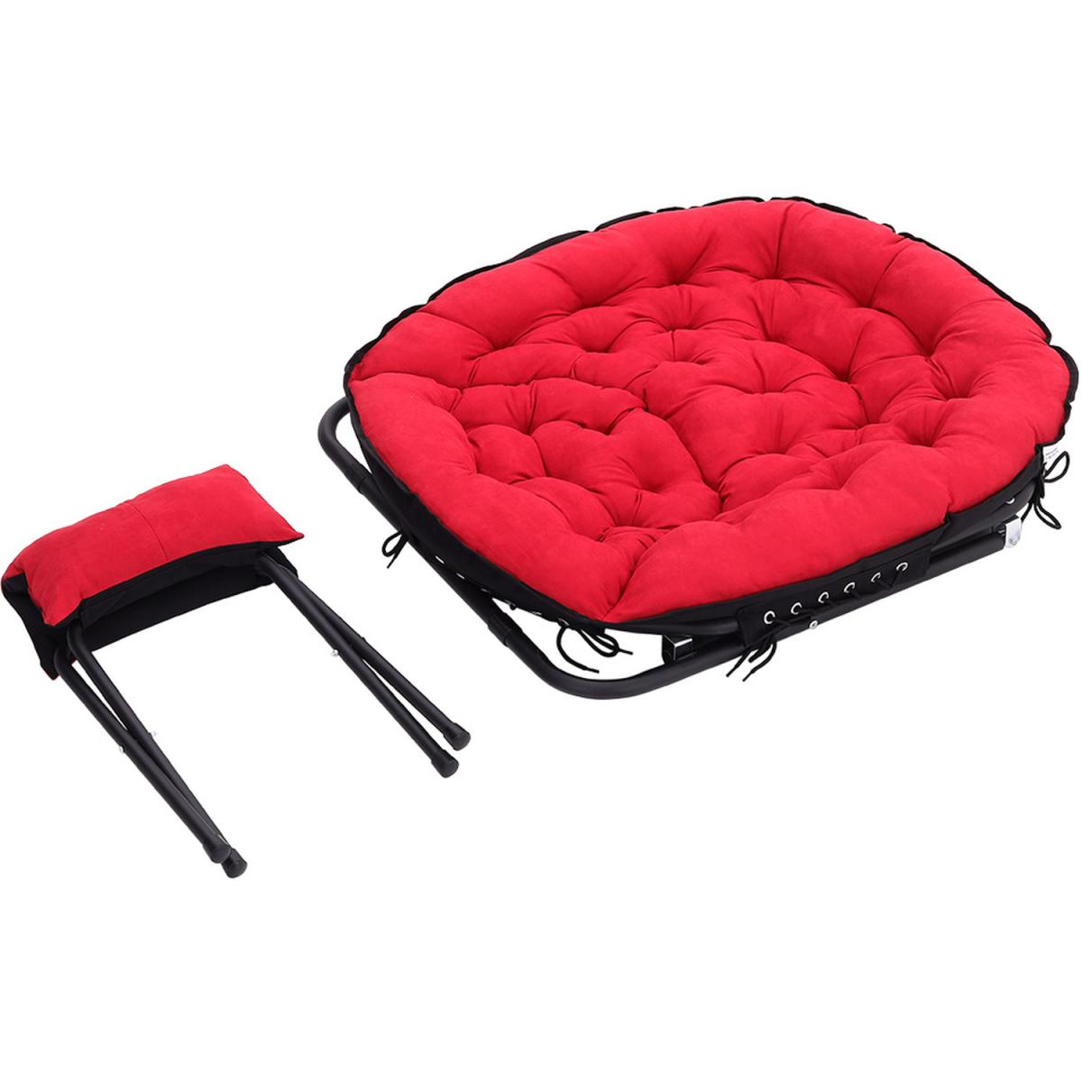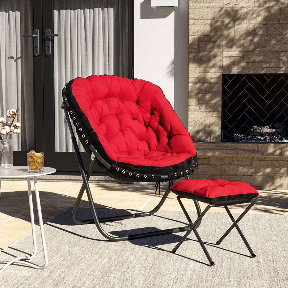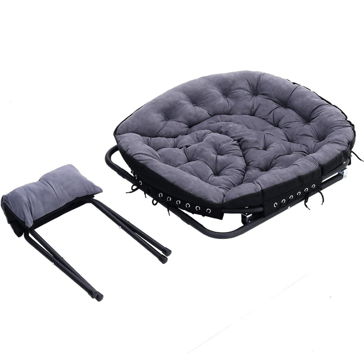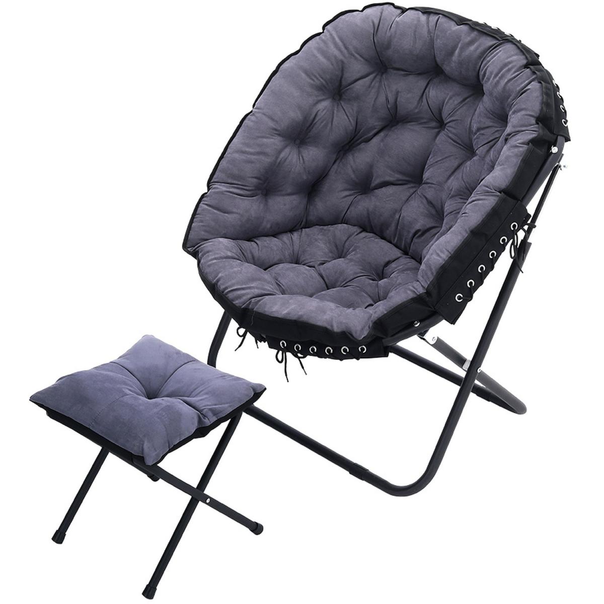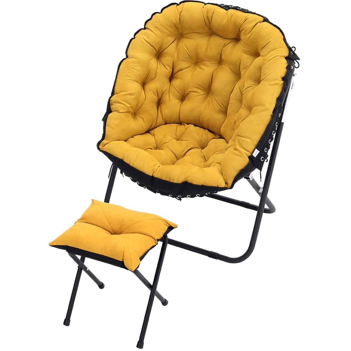 The camping moon chair is made of soft canvas fabric, the interior is filled with erect cotton and is elastic, giving you a warm, comfortable and breathable feel. High-strength steel frame, high-frequency coating, rustproof, corrosion-resistant. With footstool design, you can rest your feet up when you are enjoying your leisure time. Unique and ergonomic seat design gives you the best seat experience allowing you to relax. For home uses and outdoor activities such as Camping, Caravan, Hiking, Picnics, Fishing, Garden BBQ, Beach Travelling and so on.