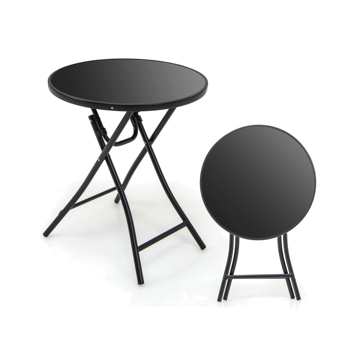 The folding patio bistro table is a versatile and practical addition to any space, whether indoors or outdoors. Its sturdy metal frame, which is rustproof, ensures durability and long service life, while the X-shaped metal structure and reinforced crossbars provide added stability. The high-grade tempered glass tabletop offers a perfect surface for snacks and adds an elegant touch to the surroundings. With compact folding size, this table also ensures simple storage and transportation, making it a convenient option. Suitable for a range of settings, from the backyard to the living room, this folding bistro table is the perfect choice for both functional and decorative purposes.