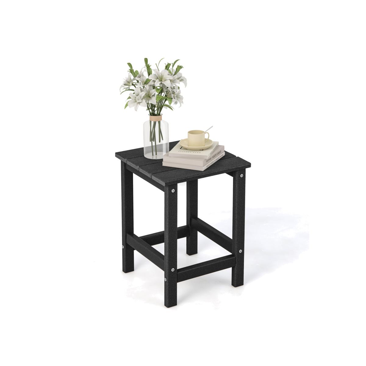 With its 47cm appropriate height, this end table fits your chairs and sofas perfectly. And the square tabletop is capable of accommodating the needed items for easy access. What's more, the premium HDPE material makes this outdoor Adirondack table weather-resistant, fade-resistant, sun-protective and waterproof to withstand outdoor changing weather better. Meanwhile, it is recyclable as well to protect our future. Garden Patio Side Table Adirondack Table - Black