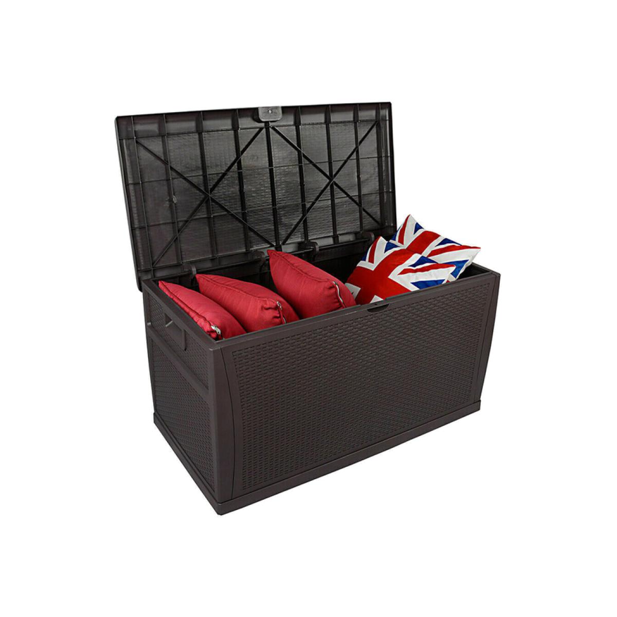 Garden Plastic Waterproof Storage Box - Brown Rattan / 61cm