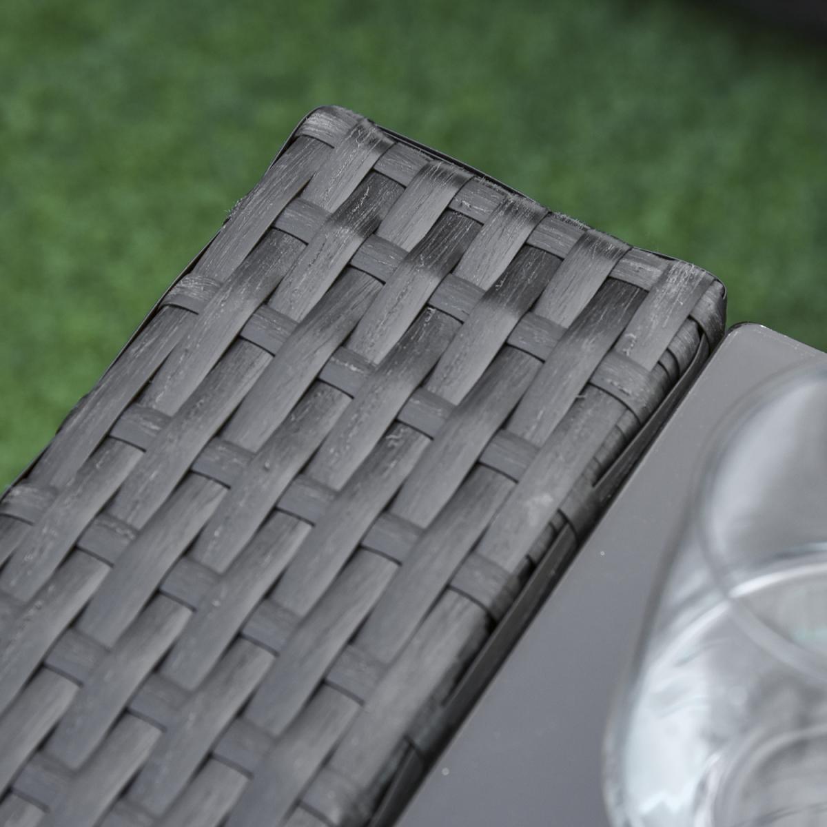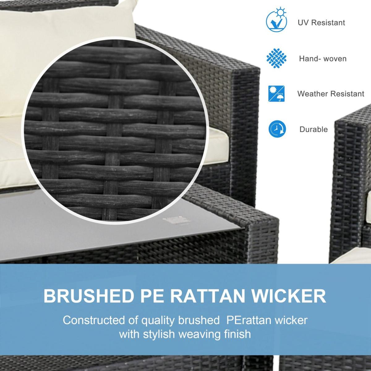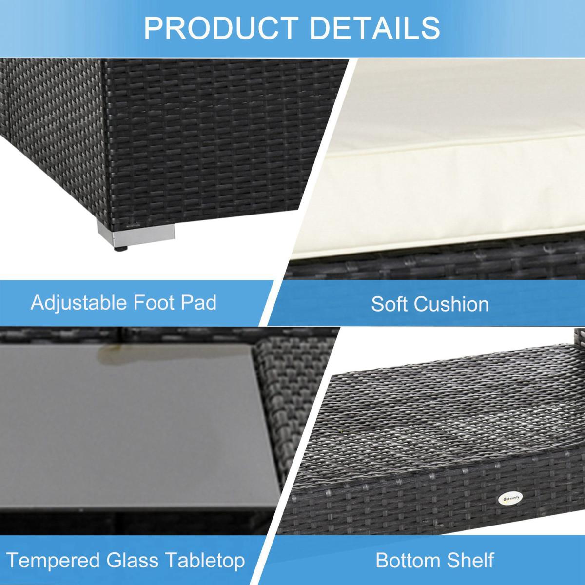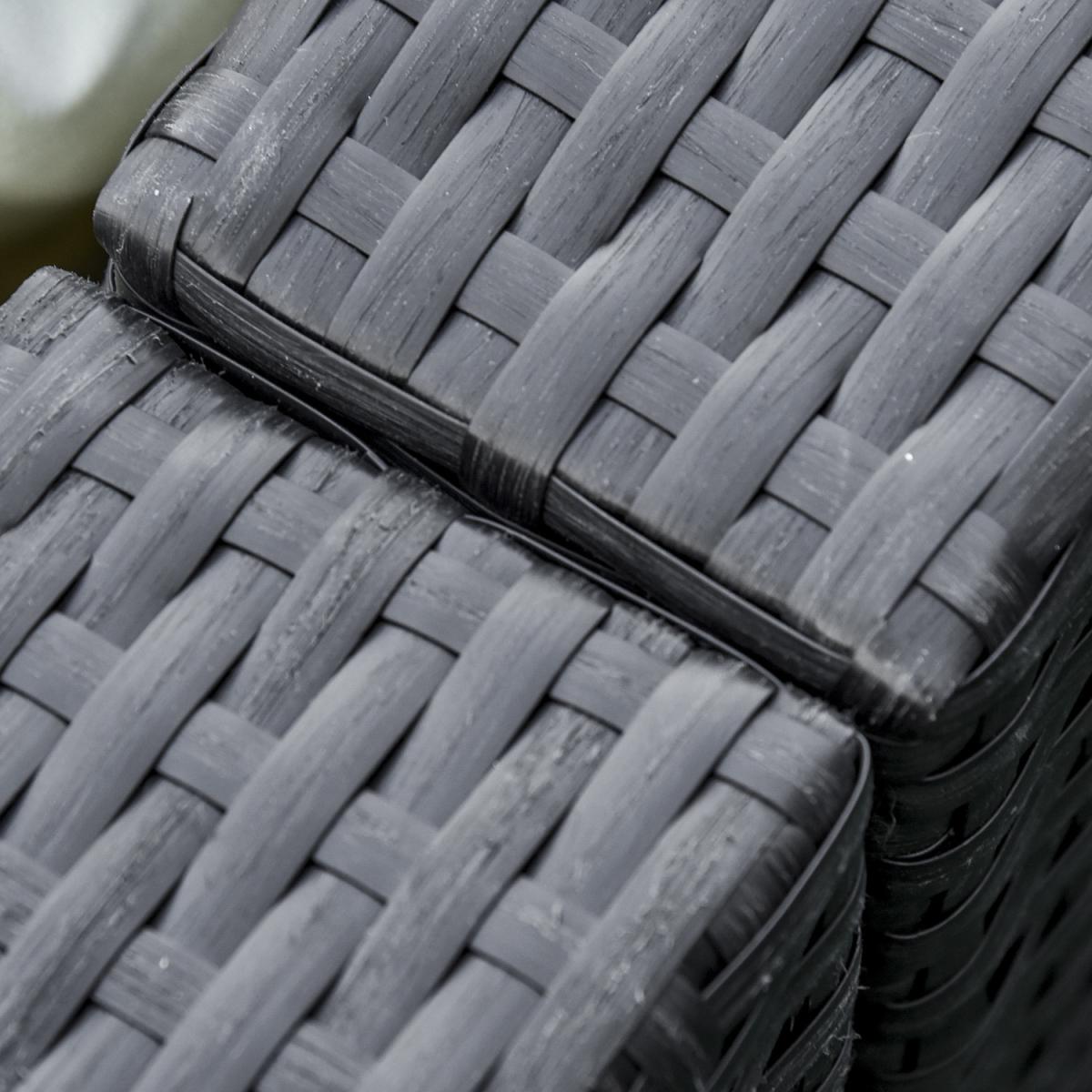 Please Note: We only offer curbside delivery for this item. We cannot deliver this item to your room of choice or to properties above ground level. We do not ship to BT/Guernsey/ Jersey/ the Isle of Man/ Northern Ireland or call for shipping charge. This 7pc Rattan sofa set is made up of 2 single-seater with armrests, 2 corner seats, 1 seater without arms, a table and a footstool. It is made of an aluminium frame and covered with PE rattan. The table is topped with a 5mm transparent tempered glass to place items. And the footstool can be used also as spare seating if required. The set comes complete with cushions and some throw pillows. This is a great set to have in your garden, patio or conservatory.