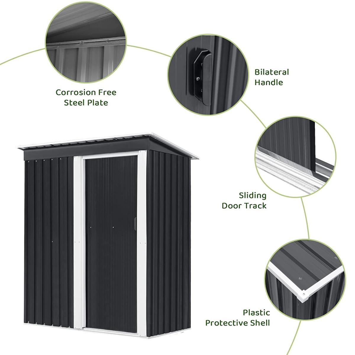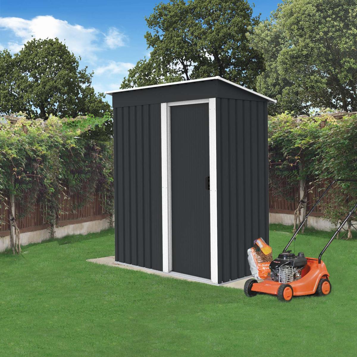 Garden Shed Metal Pent Roof Outdoor Storage With Free Foundation - Anthracite & White / 3ft x 5ft