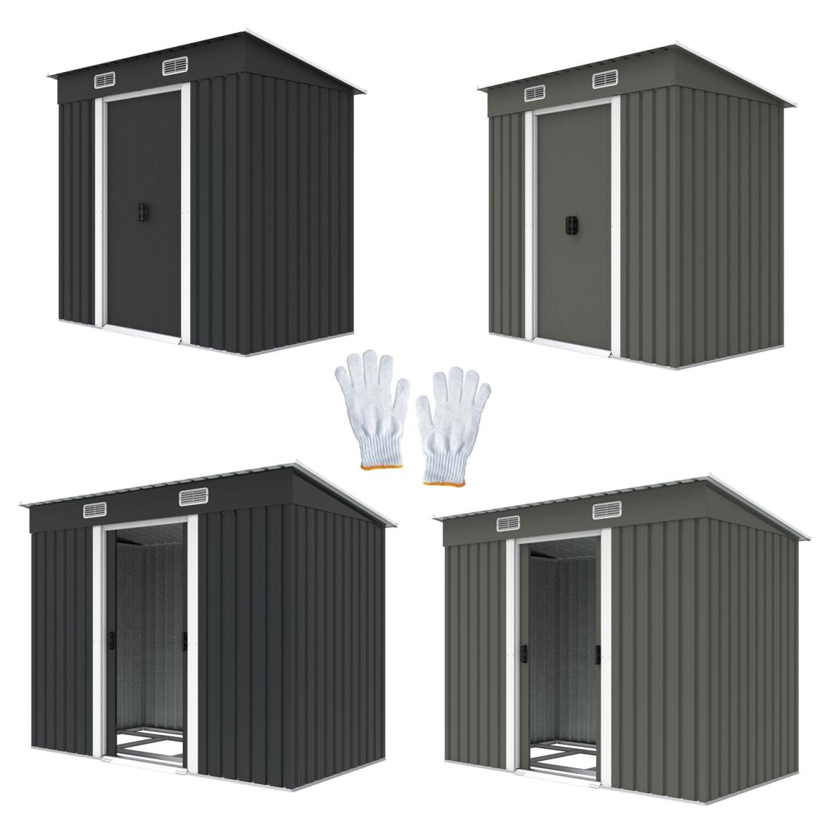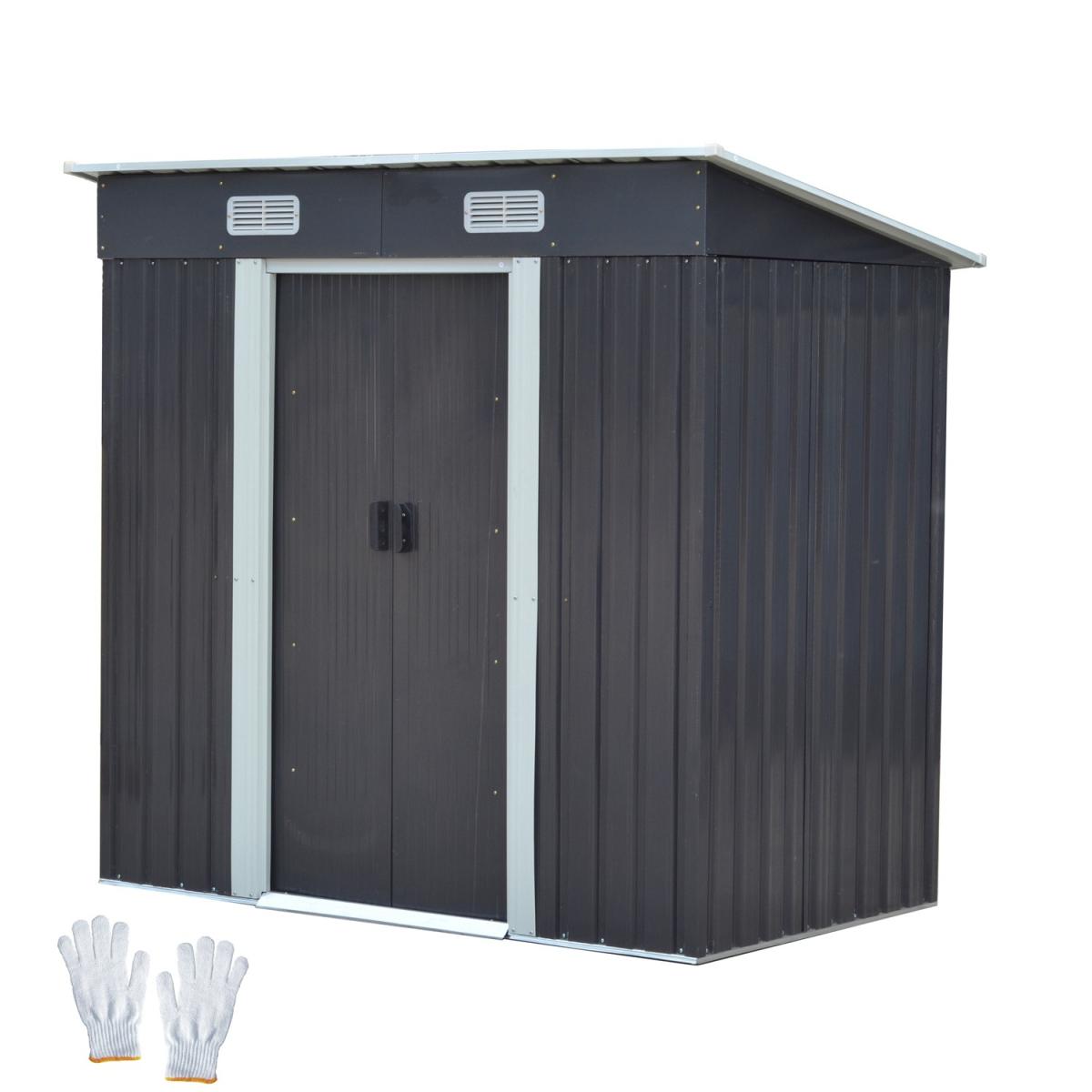 Garden Shed Metal Pent Roof Outdoor Storage With Free Foundation - Yellow & Coffee / 4ft x 6ft