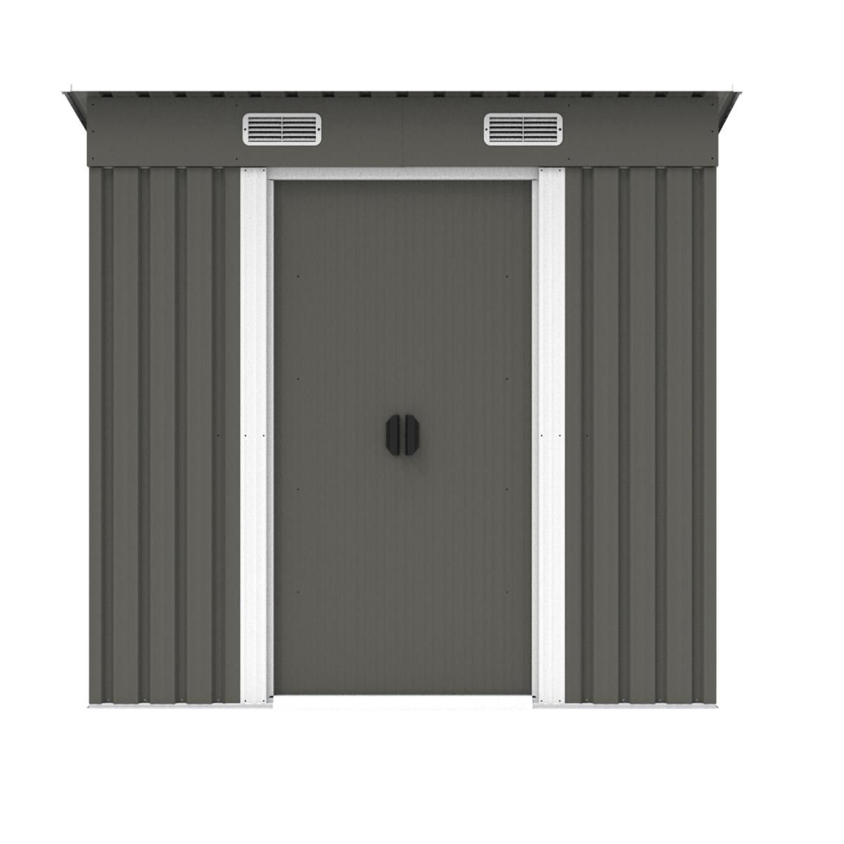 This electro galvanised metal shed provides a strong secure storage solution at a very favourable price. Produced in a double-baked-on enamel finish for durability. The shed has 2 doors which have deep runners entry ramp for opening and closing.
