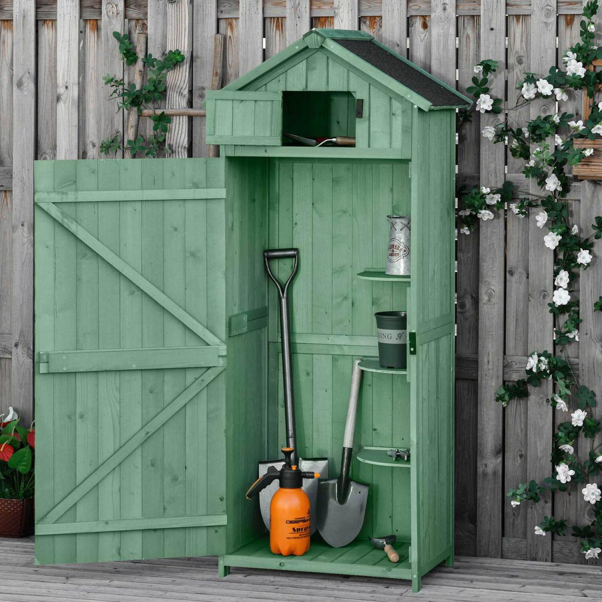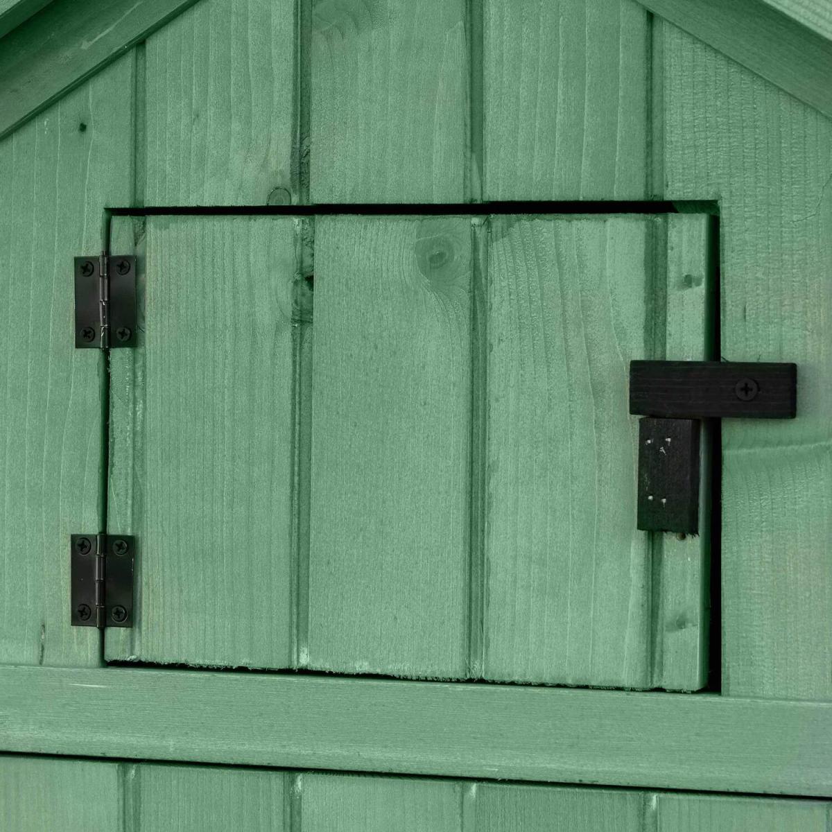 I really like this green garden shed with shelves, as it offers a practical storage solution that can work well in a variety of outdoor or utility areas. Its vibrant colour can add a cheerful pop to a garden, especially when paired with greenery or colourful blooms. For styling, it’s best to keep the interior organised, perhaps adding matching storage baskets or labelled containers on the shelves. It suits casual, rustic, or modern garden aesthetics and can be complemented with natural textures like wood or stone. To keep it looking its best, consider positioning it in a slightly shaded spot to avoid fading, and pair it with other garden furniture or planters for a cohesive outdoor look.