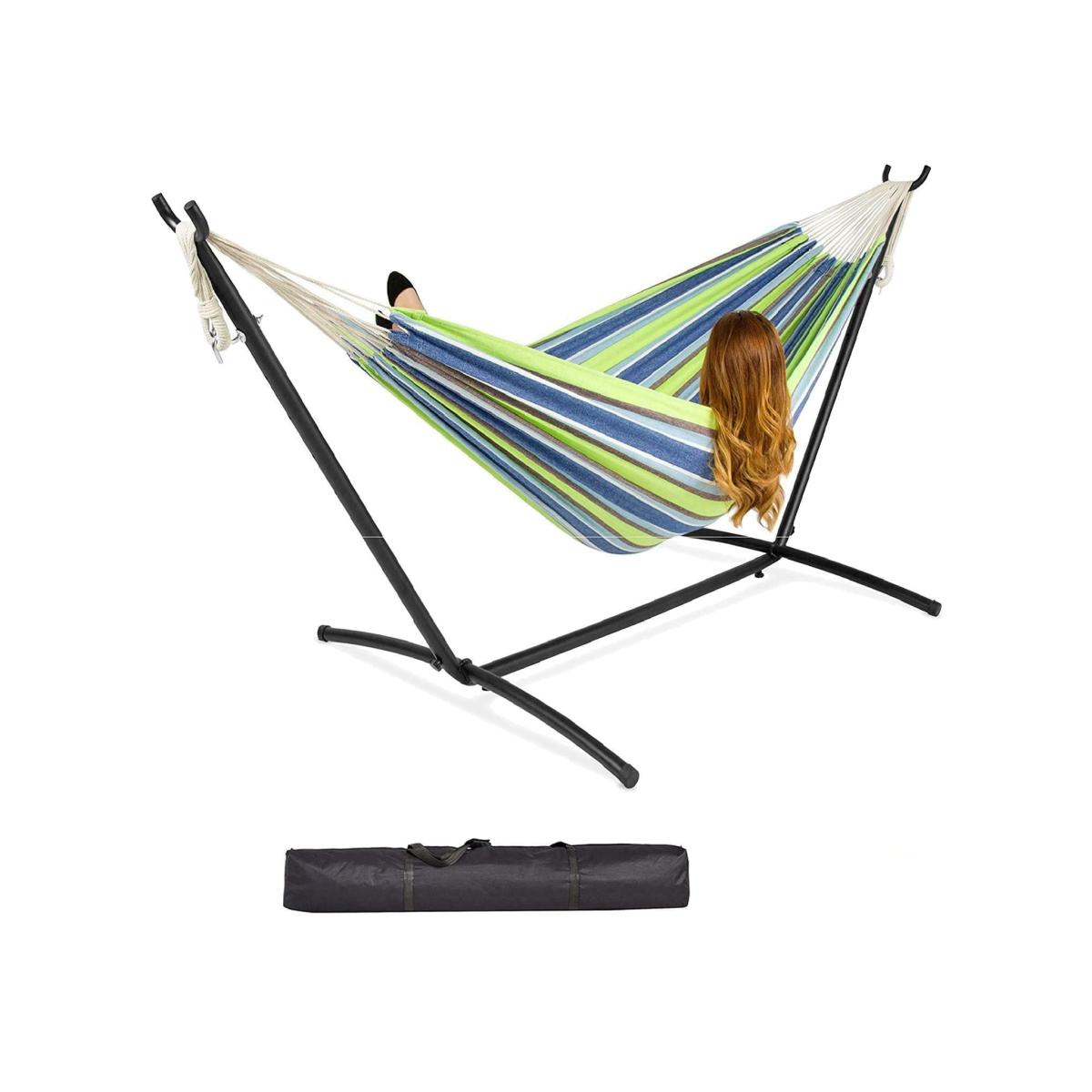 Gr8 Garden Single Cotton Hammock Outdoor Camping Patio Bed Swing with Space Saving Steel Metal Stand Frame. Gr8 Garden presents you with this brand new single hammock/steel stand. With the included carrying case, you can relax at any outdoor place. This hammock is designed for promoting a relaxing lifestyle in any outdoor place. It is made of 100% cotton and the stand is constructed of sturdy and all weather-resin steel. This hammock is able to accommodate an adult, up to 150K. G, you will love sharing this hammock on a warm summer day.
