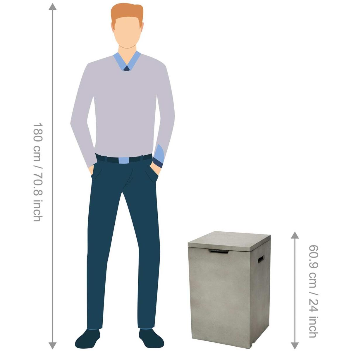 Teamson Homes Gas fire pit storage is convenient and a great overhaul of the look of your outdoor space. This sleek concrete square style gas canister storage unit has a side hose opening for easy access and safety. Easy to manoeuvre with two handle areas on each side, the Teamson round gas cylinder storage will add style to your garden furniture. Versatile in use, this storage unit can also be used as a side table. Good for families with young kids and with this storage unit, child safety is definitely considered!
