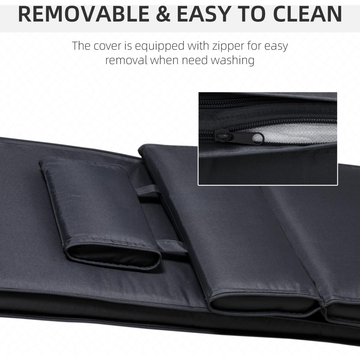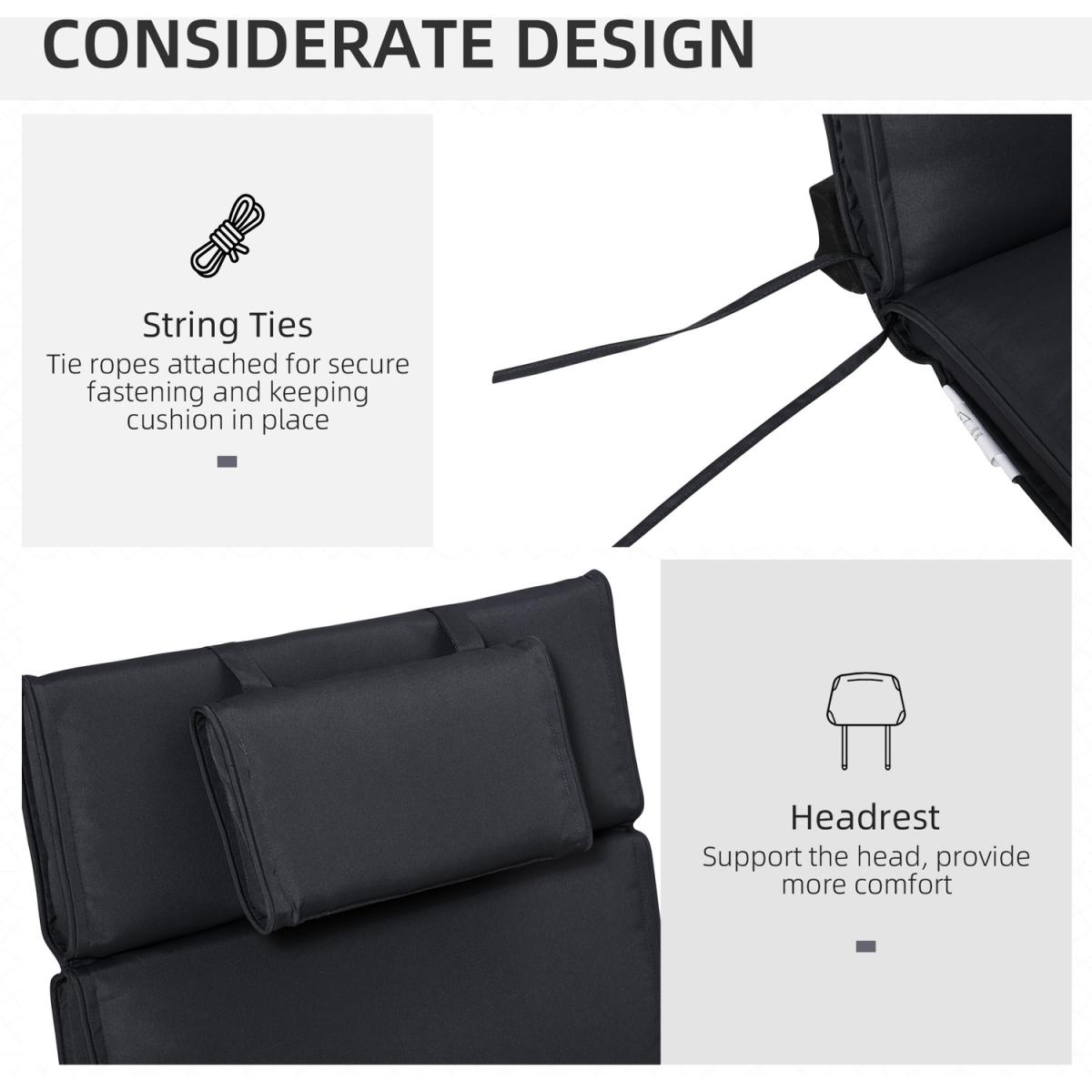 Transform your outdoor lounge chairs with these garden chair cushions with backs from Outsunny. With an easy to clean and fade-resistant cover, our outdoor seat cushions feature thick padding with a headrest so you can relax comfortably on it. Sized at 198 x 53cm, it will fit onto most lounge chairs and has ties on the sides to attach it to the chair without it coming off. And this garden seat cushion will help make sunbathing that extra bit comfortable for you.