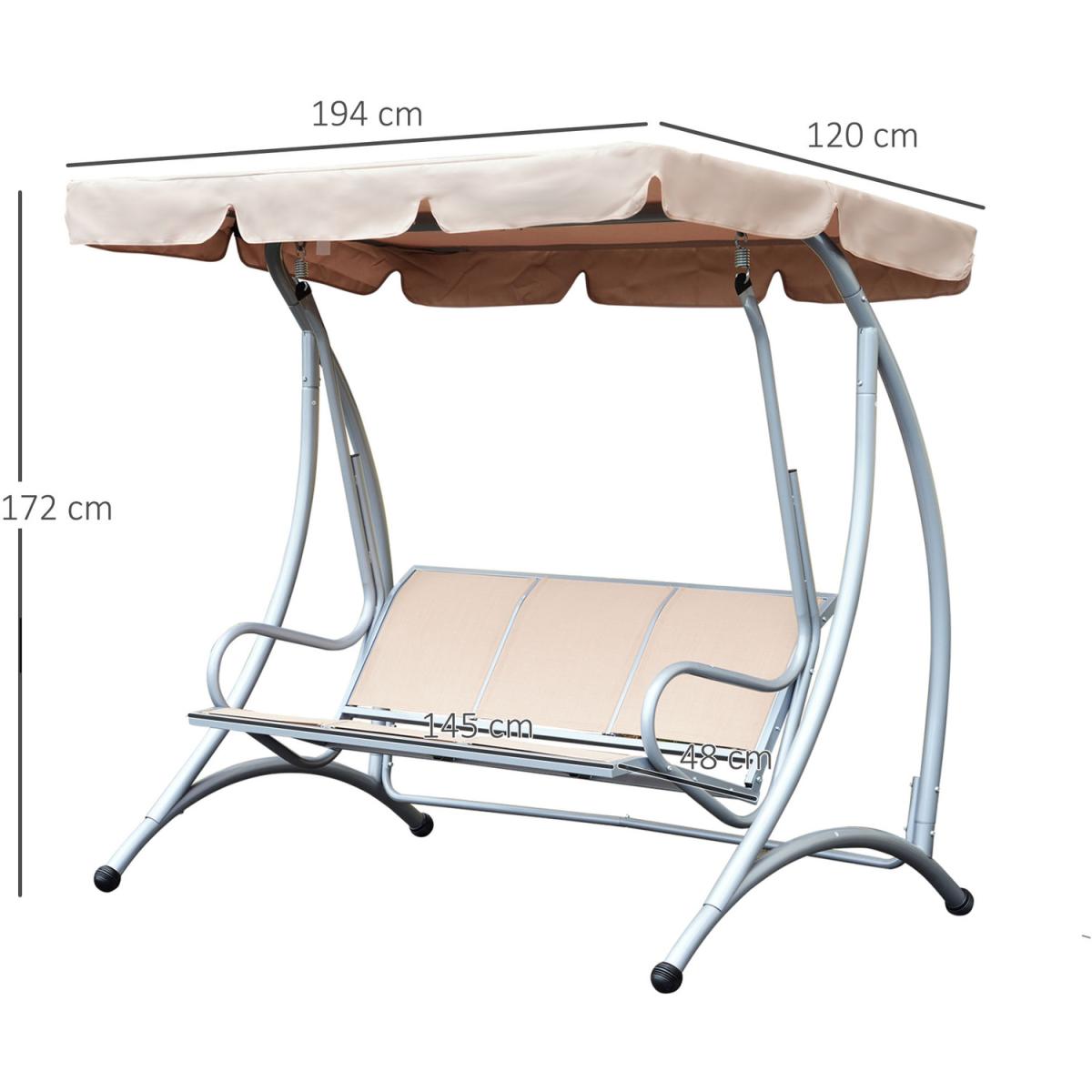 The Outsunny 3-Seater swing chair is designed to enhance any home or backyard space. With its durable metal frame and comfortable seating, this chair offers an ideal place to relax. The stylish curved steel frame reinforces the swing seat while the UV resistant polyester fabric offers a large shaded area. It is an ideal choice to extend your outdoor leisure time, even on sunny days.