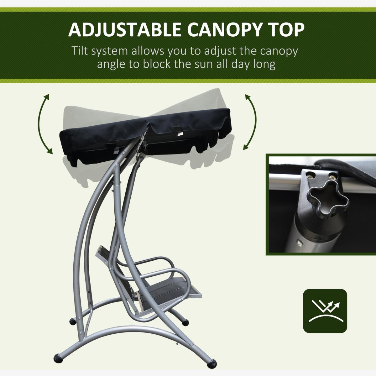 The Outsunny 3-Seater swing chair is designed to enhance any home or backyard space. With its durable metal frame and comfortable seating, this chair offers an ideal place to relax. The stylish curved steel frame reinforces the swing seat while the UV resistant polyester fabric offers a large shaded area. It is an ideal choice to extend your outdoor leisure time, even on sunny days.