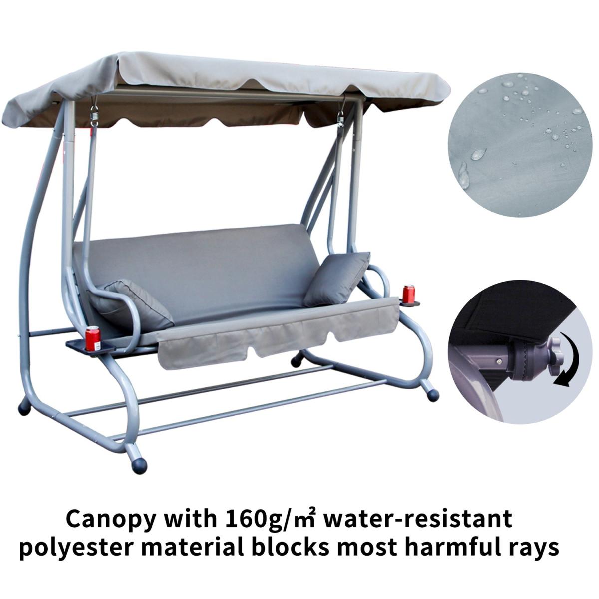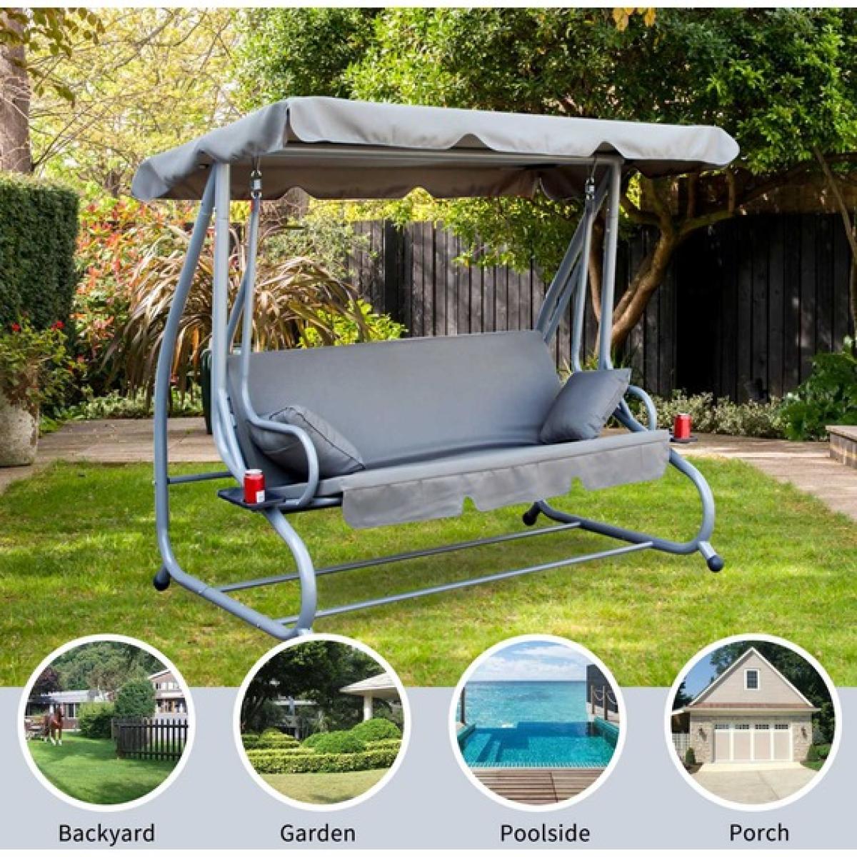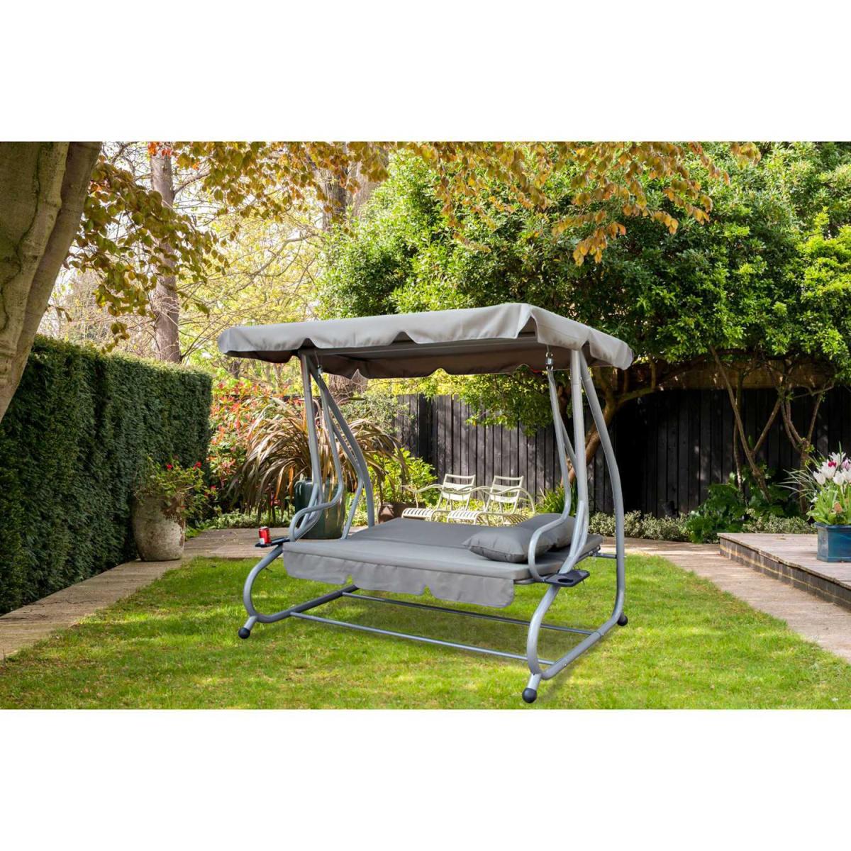 Garden Swing Hammock 3 Seater Chair Bench Bed - Grey