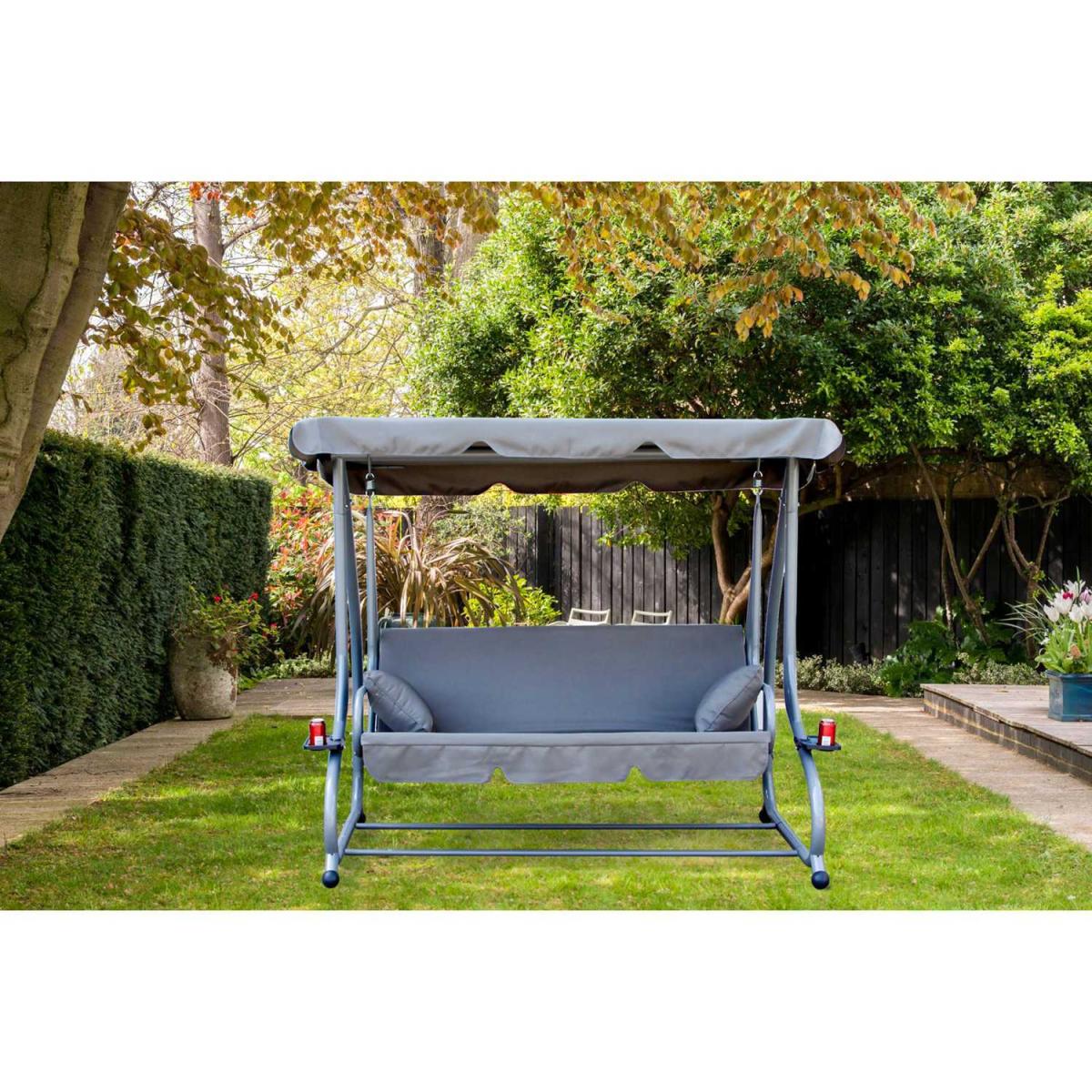 I really like this three-seater garden swing because it offers both comfort and versatility, making it a great addition to various outdoor settings. Its neutral grey colour means it blends effortlessly with different colour schemes, from modern minimalist gardens to more traditional outdoor spaces. It works well in both backyard settings and more casual garden corners, especially when styled with soft cushions or throws for added comfort. To keep it looking fresh, consider pairing it with other grey or natural-tone outdoor furniture, and add some vibrant cushions or a canopy for colour and sun protection. Practical styling tips include situating it near a shaded tree or under a gazebo, creating an inviting spot for relaxation or casual gatherings.