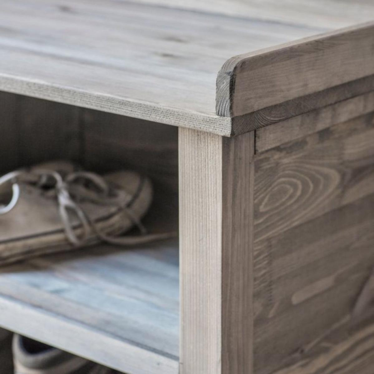 Experience the ultimate in footwear storage with our indispensable seating solution. This piece not only provides a stylish and functional place to sit but also offers ample storage for your footwear essentials. The rustic grains and markings on the surface add character and charm, creating a welcoming atmosphere in your home. Say goodbye to shoe clutter and hello to a beautifully organized space that reflects your unique style. This seating and storage combination is the perfect addition to your entryway, hallway, or any area where shoes need a stylish home.