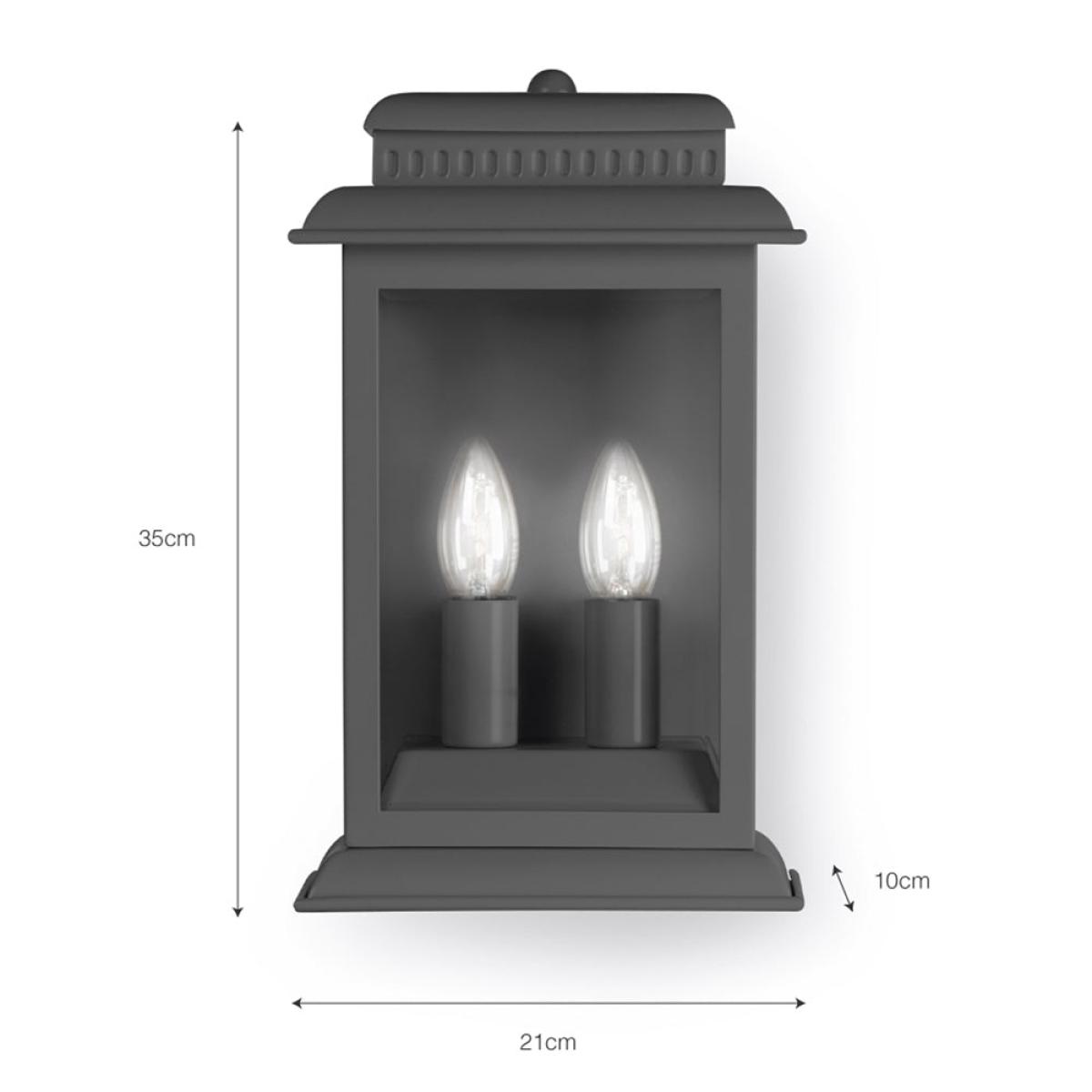 The classic Belvedere Light in Charcoal is crafted in hardwearing materials with Glass panels and can be affixed to any outdoor wall to give that much-needed glow on a dark evening. Designed to fit. View More. The classic Belvedere Light in Charcoal is crafted in hardwearing materials with Glass panels and can be affixed to any outdoor wall to give that much-needed glow on a dark evening. Designed to fit two Candle style bulbs, the traditional appearance echoes Victorian inspiration and the urban colouring reminds us of old fashion lampposts. We think it would sit perfectly alongside the large doorways of city town houses or be just at home on a side passage of a countryside cottage. Whatever style home the Belvedere Light will be a much-needed addition to them all.