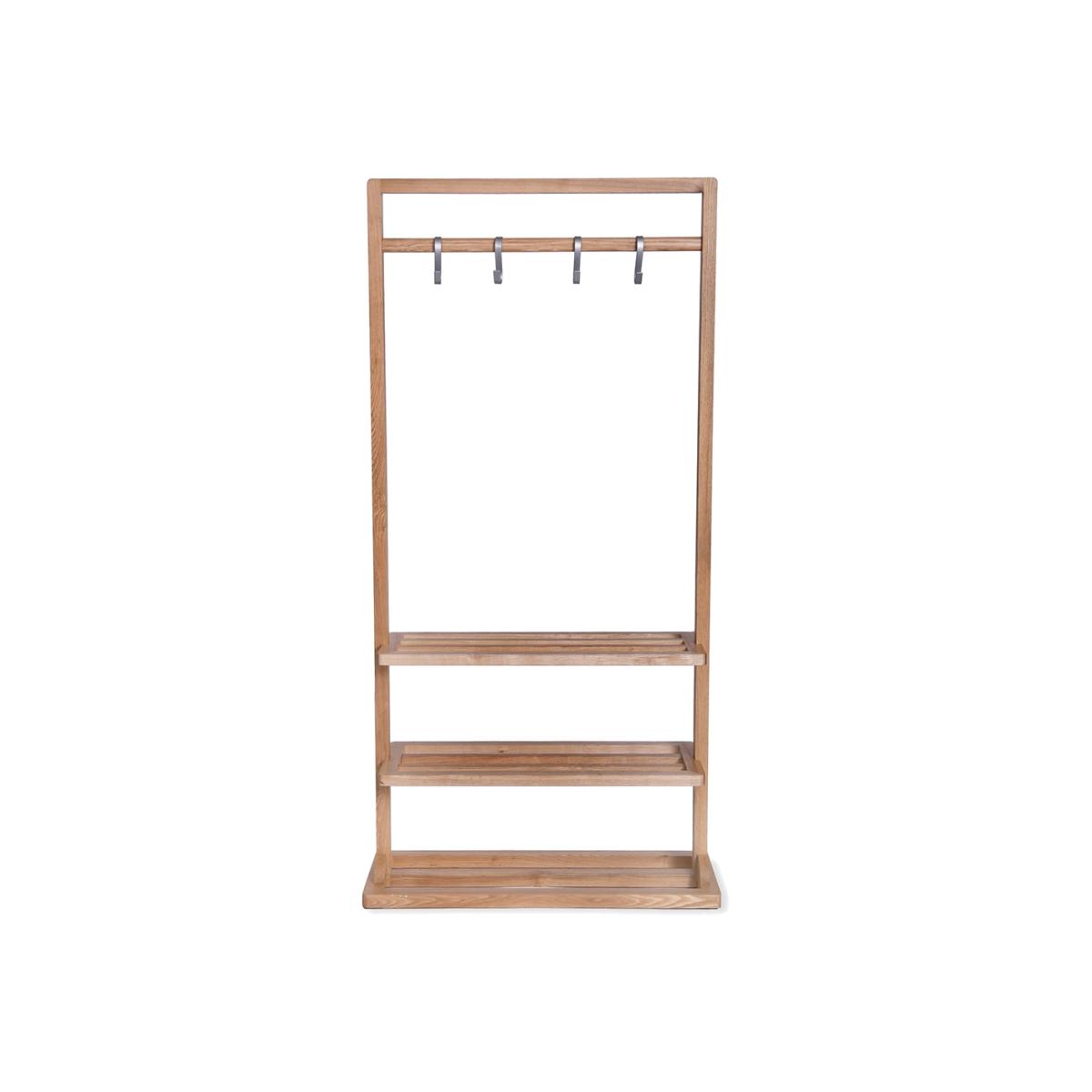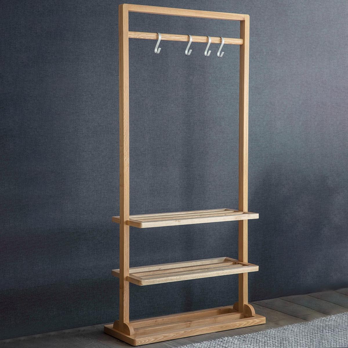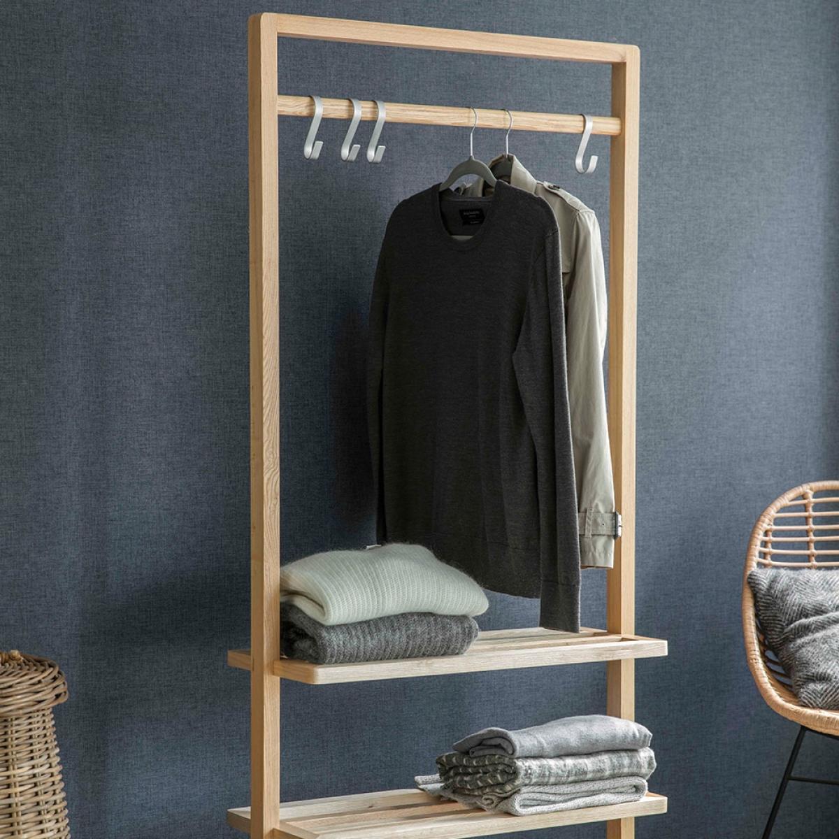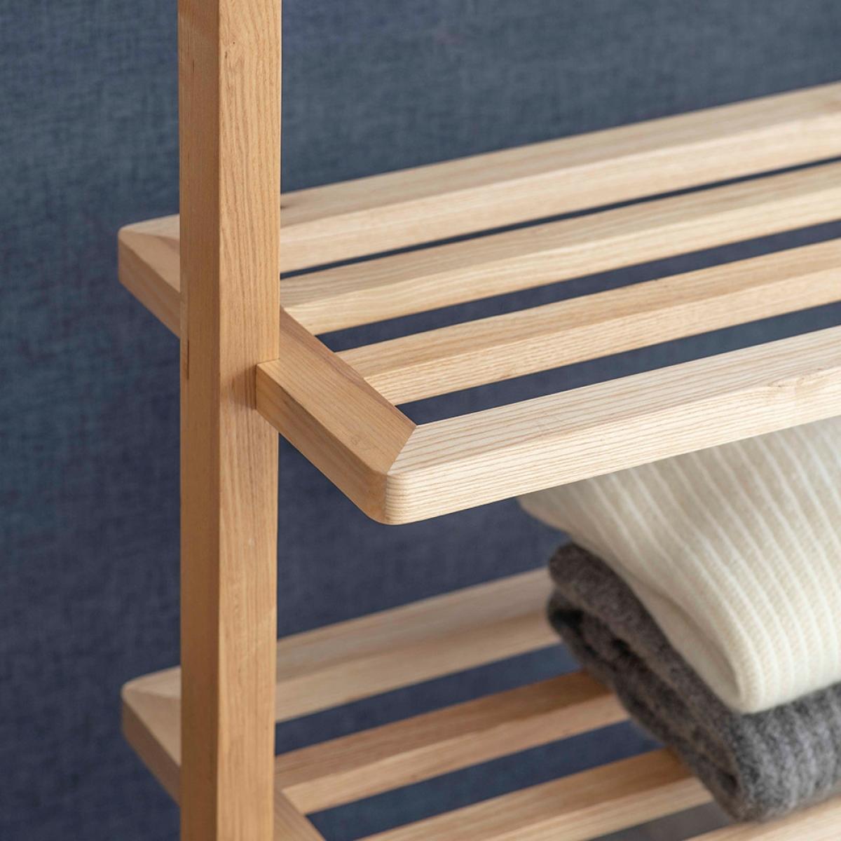 I really like this coat rail because of its simple, clean design which works well in a variety of interiors, from rustic cottages to modern apartments. It's a practical piece that offers hanging space with its hooks, as well as shelves for accessories or shoes, making it perfect for organising entryways or bedrooms. I recommend styling it with neutral tones or natural textures to enhance its understated appeal, and pairing it with baskets or hooks for additional organisation. It's especially useful in smaller spaces where multi-functionality is key, without sacrificing style.