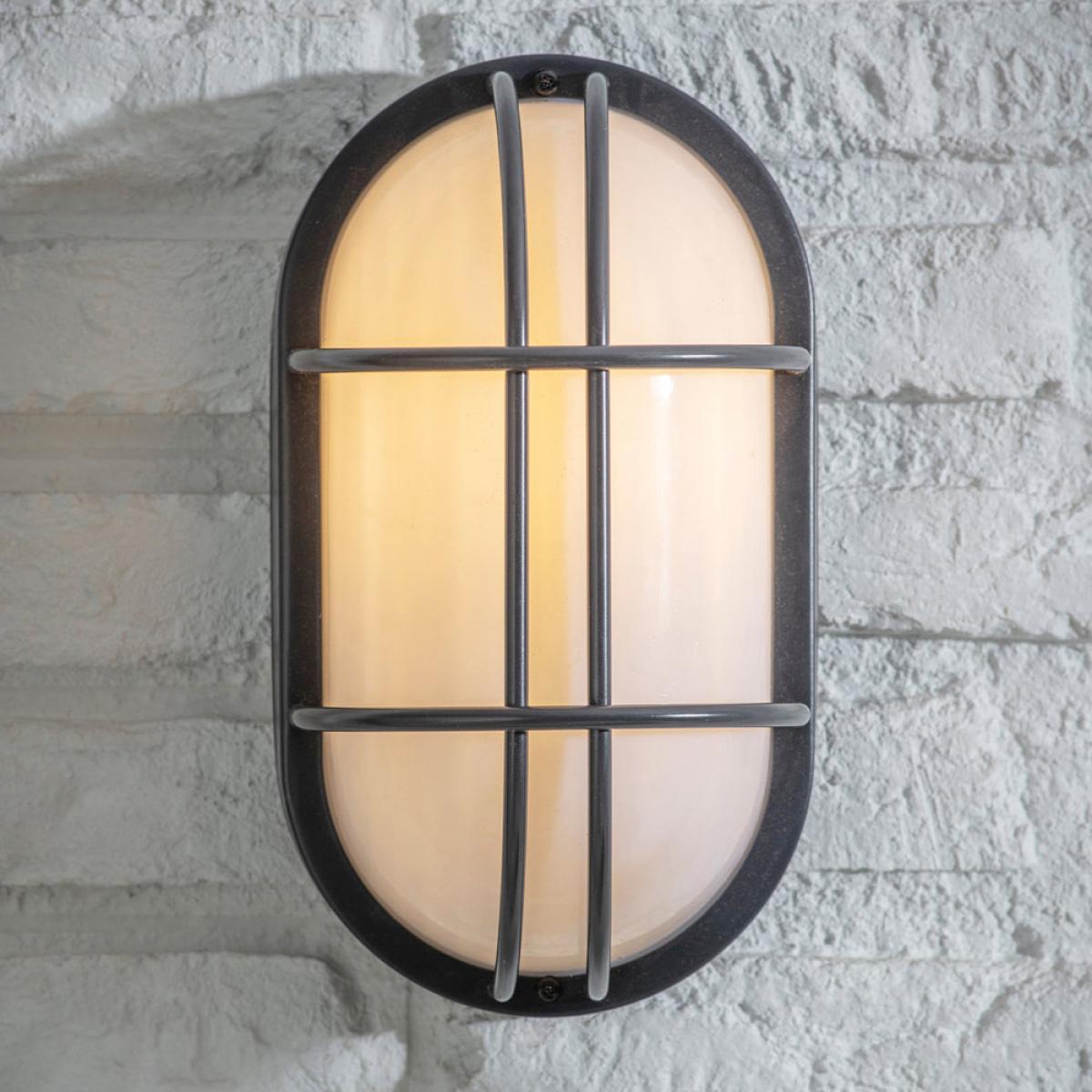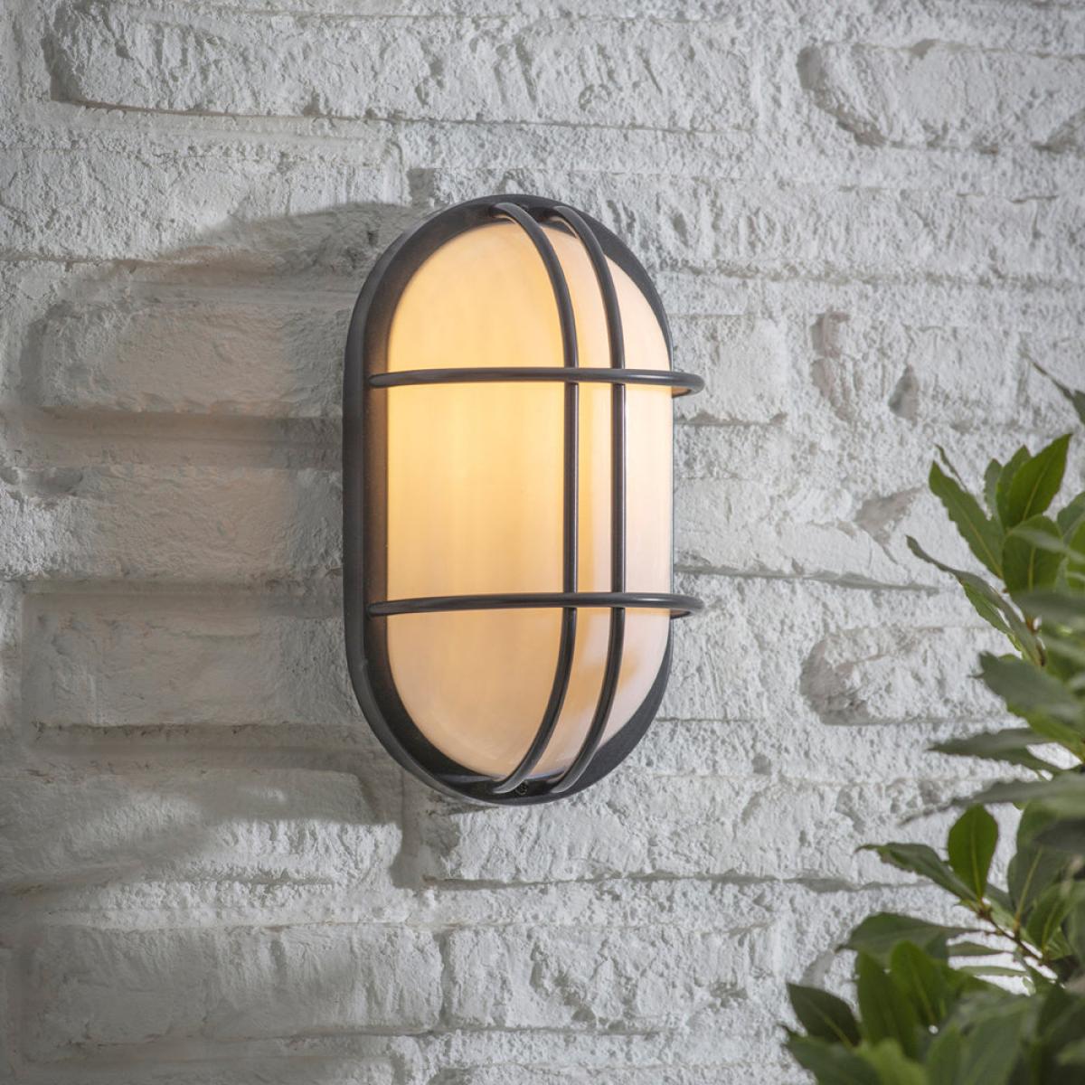 With its nautical appearance the Carbon Bulkhead Light will add a modern twist to exteriors. Fully weatherproof, its caged body is crafted in steel and a thick glass shade allows light to emit whil. View More. With its nautical appearance the Carbon Bulkhead Light will add a modern twist to exteriors. Fully weatherproof, its caged body is crafted in steel and a thick glass shade allows light to emit whilst protecting the bulb. This striking wall light makes a style statement and would suit all manner of homes, garages, potting sheds and even the conservatory or bathroom!.