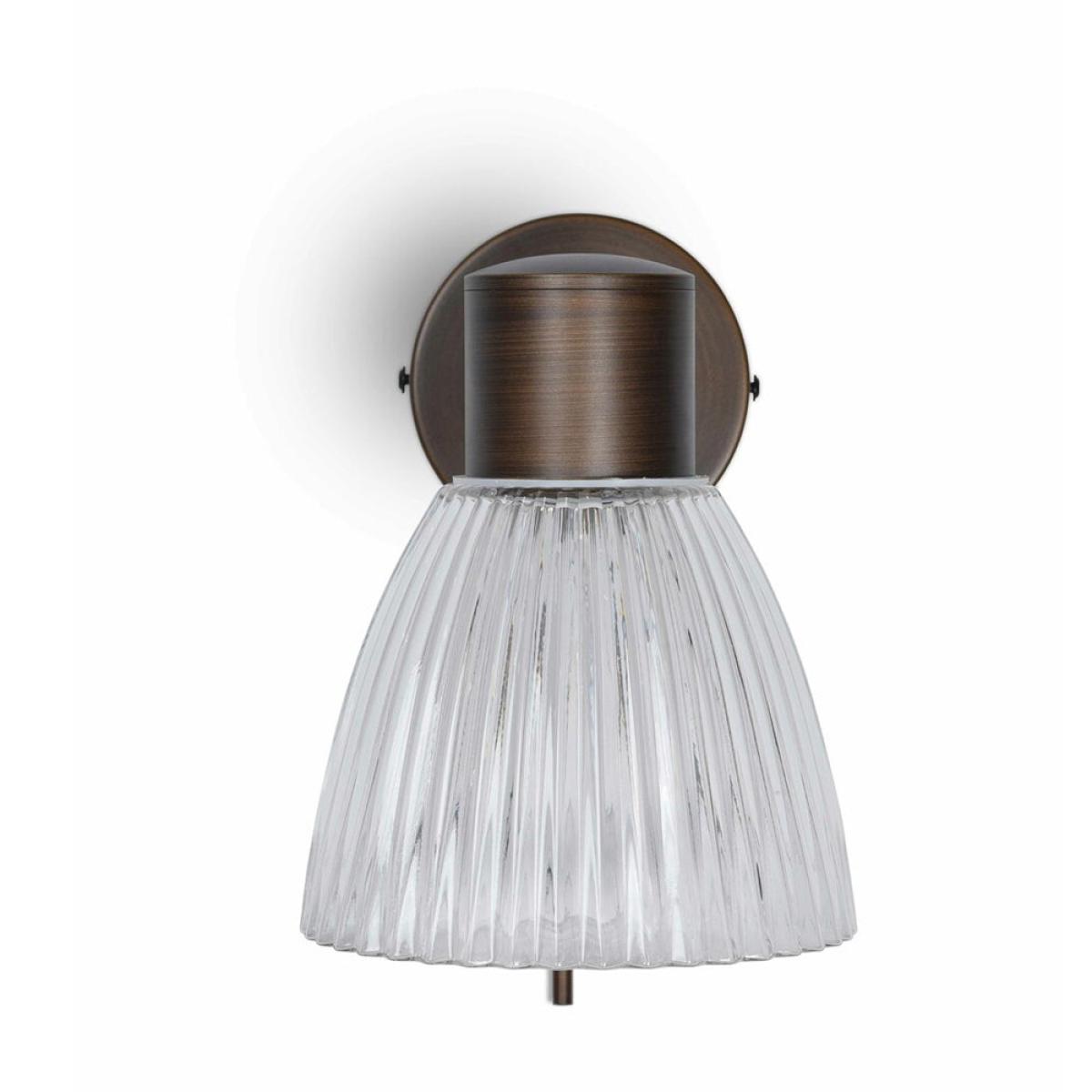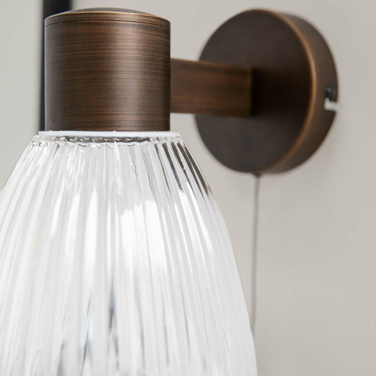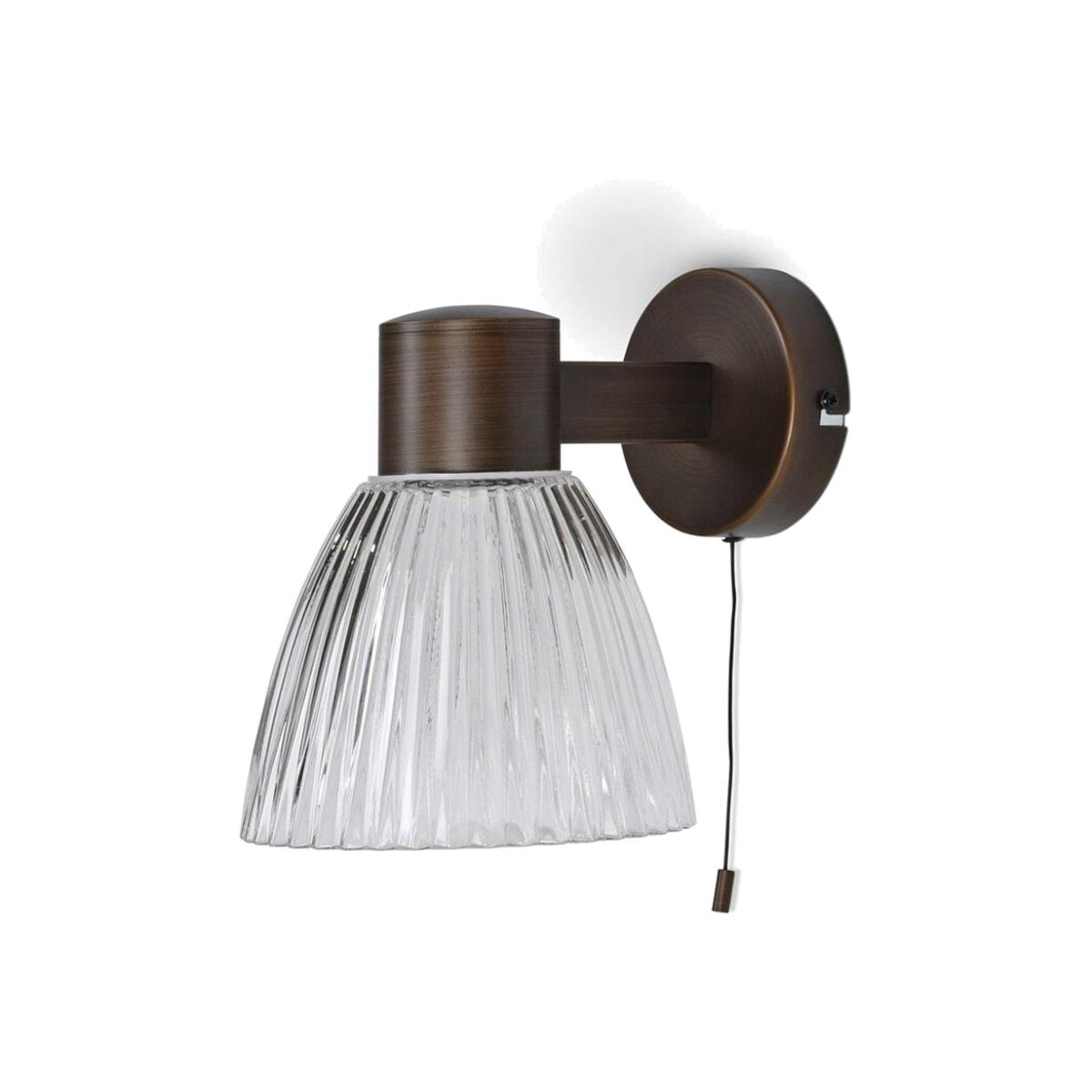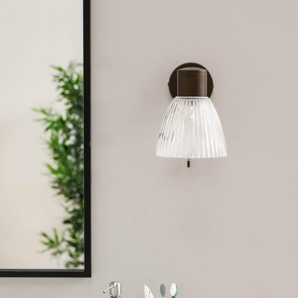 Illuminate your bathroom with elegance using the Garden Trading Campden Bathroom Wall Light Antique Bronze. Featuring a ribbed glass shade and an Antique Bronze finish, this wall light exudes French-inspired style while emitting a warm glow. With its moisture-resistant design, pull cord switch, and protective glass base, it"s perfect for bathrooms of any size. Place it above the sink for a charming focal point or install a pair to frame a large mirror. Please note that due to export restrictions, delivery to mainland Europe is currently unavailable. Dimensions: H: 19 cm x W: 14.5 cm x D: 20 cm