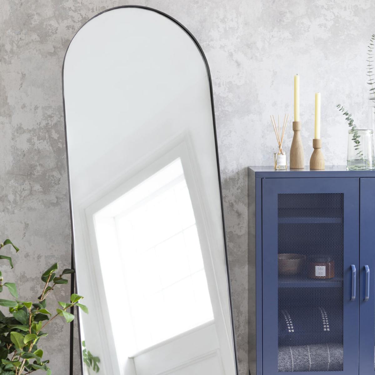 Creating brighter living areas with an increased sense of space, our Charlcombe Arched Freestanding Mirror is crafted with a full length black iron frame that is finished in an arch. Easily manoeuv. View More. Creating brighter living areas with an increased sense of space, our Charlcombe Arched Freestanding Mirror is crafted with a full length black iron frame that is finished in an arch. Easily manoeuvred, it adds sophistication to any interior area. Suitable for standing only, rather than being hung, the Charlcombe features a support leg (fixable with screws) that ensures the stability of this versatile piece as it makes a style statement around the home, whether positioned in hallways, living rooms, or bedrooms.