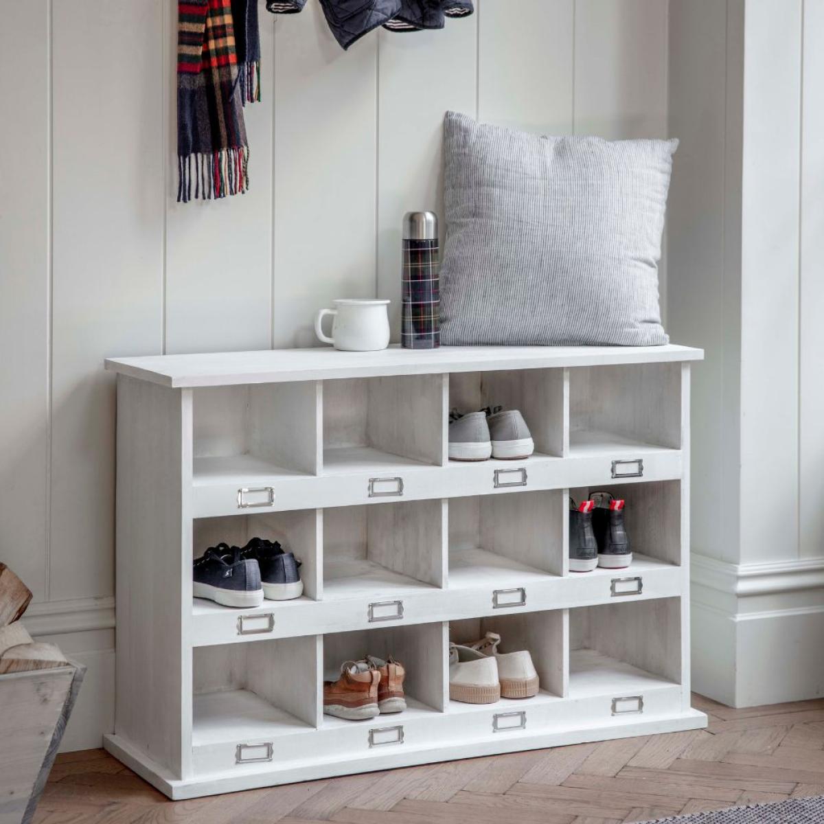 Introducing the Chedworth 12 Shoe Locker in Whitewash Spruce – a perfect combination of practicality and style for your shoe storage needs. This shoe locker offers a chic and efficient solution to ensure that all your shoes find a designated home. With ample space for up to 12 pairs of shoes, it's the ultimate solution to keep your footwear organized while adding a touch of elegance to your living space. Bid farewell to shoe clutter and say hello to a tidy and stylish shoe storage solution with the Chedworth 12 Shoe Locker in Whitewash Spruce.