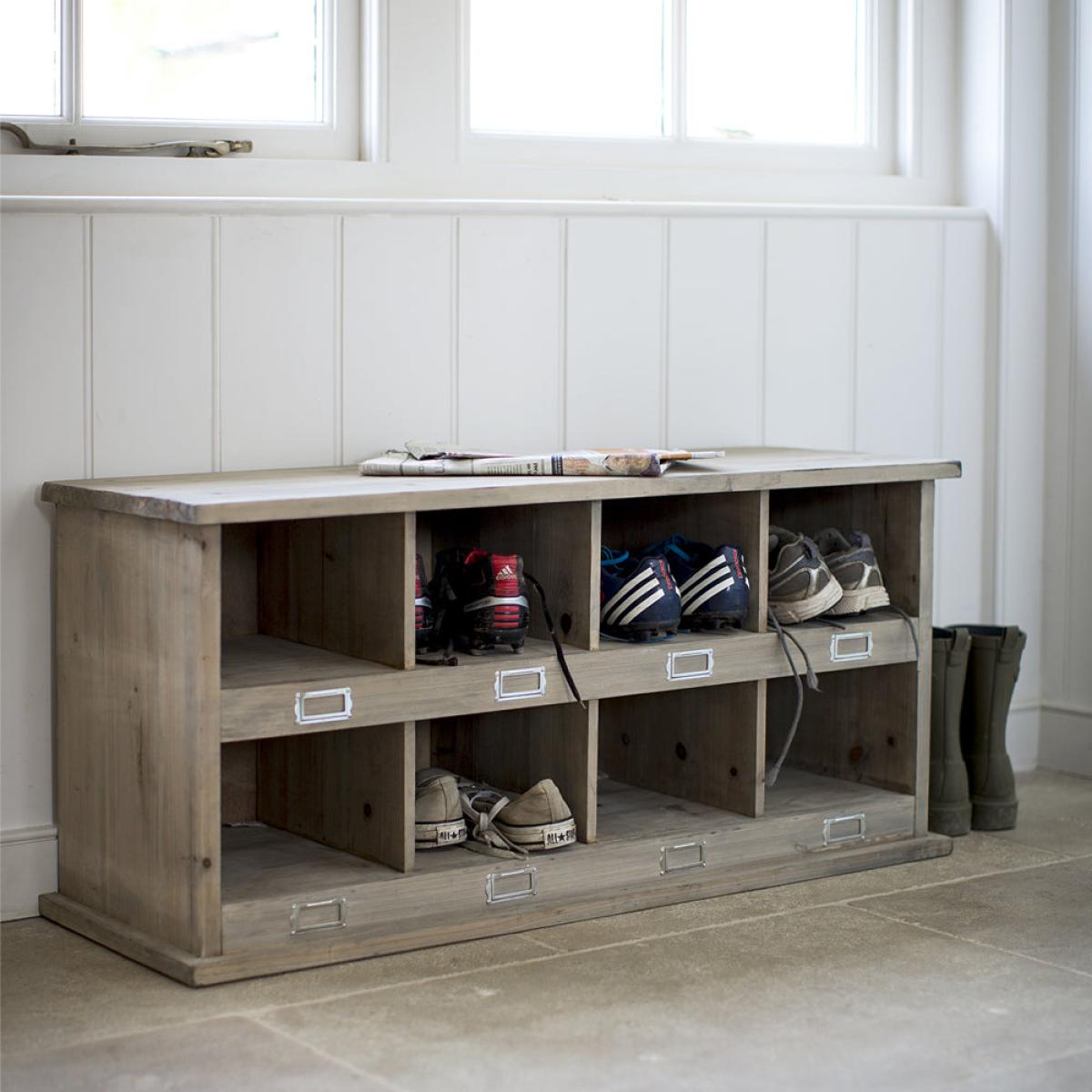 Practical and stylish storage inspired by traditional design, the Chedworth Shoe Locker is the perfect way to ensure that all those stray trainers, football boots and pumps have a home. Crafted in Spruce we offer a choice of sizes to suit both small and larger homes. Boasting plenty of storage the unit offers a wonderfully neat solution for any home and comes with space to label each compartment (so no excuse for losing shoes). Dimensions: H: 46 x W: 97 x D: 35 cm Materials: Spruce. Stained with water stain, not chemically treated Assembly Required: No Care Instructions:Dust with a clean, lint free, dry cloth. No harsh abrasives Additional Information: Indoor use only. Not designed to be used as a bench.