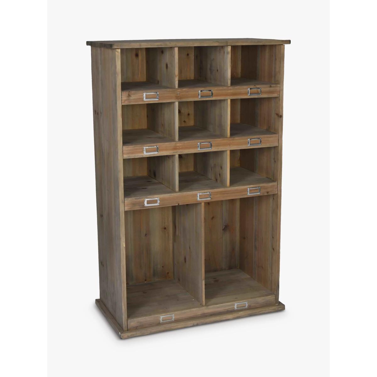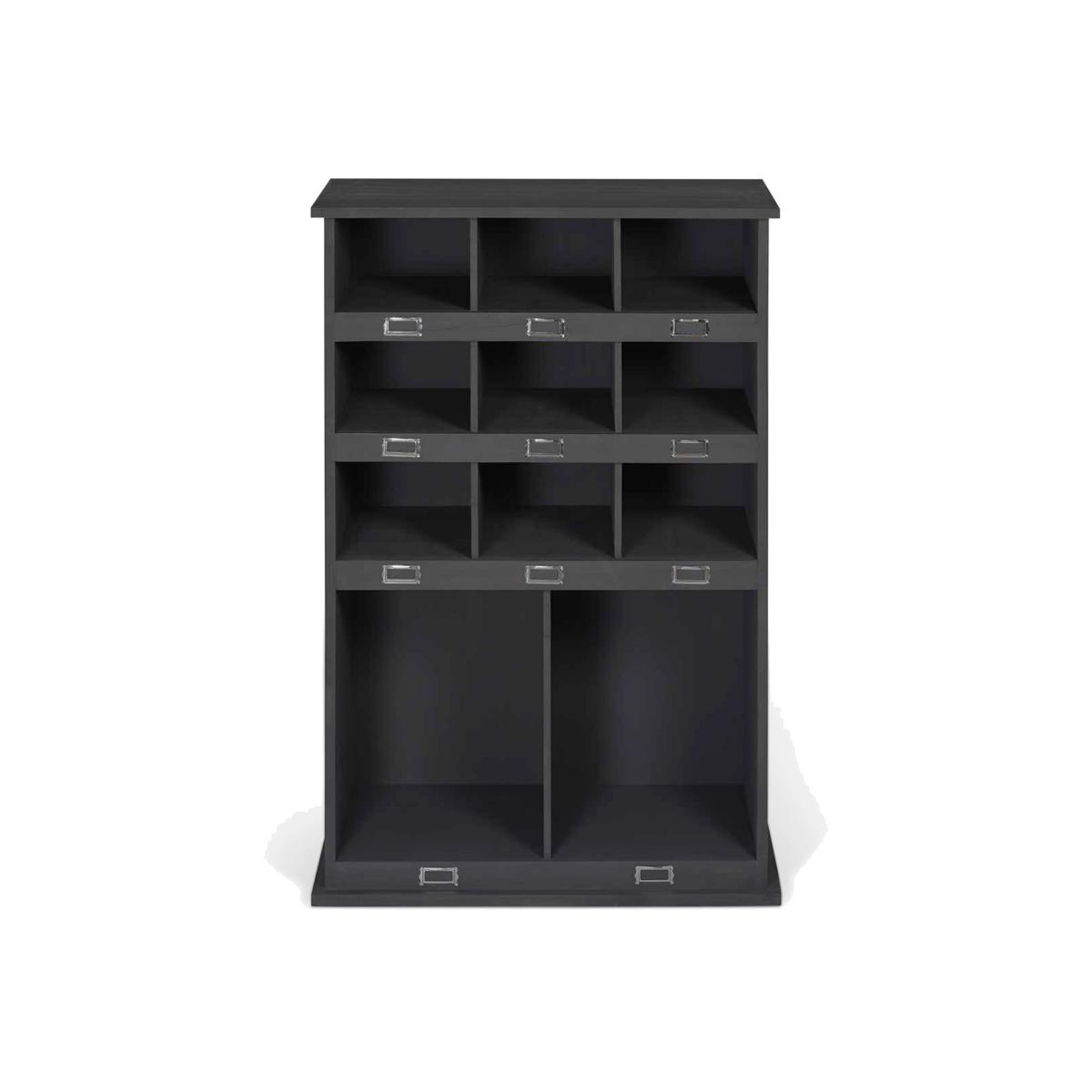 Ideal for large families. The ultimate shoe storage with two welly sections and 11 slots in all to organise your footwear. Above each cubby hole is a metal label holder so that everyone can see whose shoes go where, while the top surface could be used to hold a lamp, vase of flowers or other decorative objects.