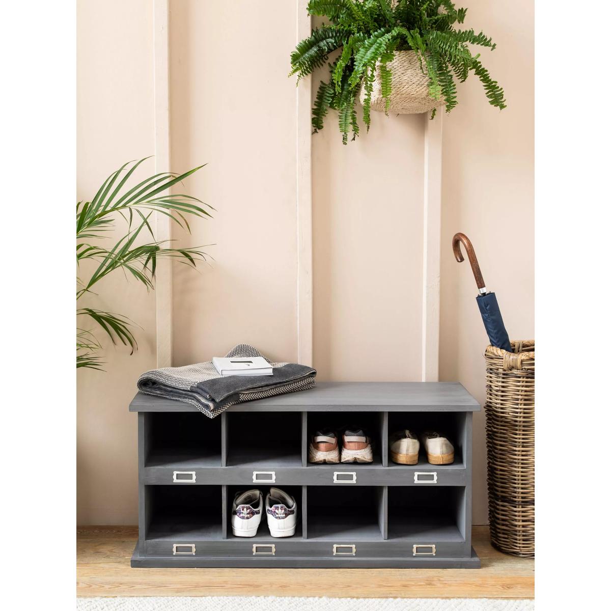I’m a big fan of this wood-and-metal shoe cubby for its honest materials and straightforward design. It slots neatly into hallways or boot rooms styled in country, coastal or pared-back industrial schemes, where the pale pine and brushed metal tags pick up on neutral colourways and raw textures. For a tidy look, label each compartment with slip-in cards for family members or shoe types, and fit discrete rubber feet underneath to protect floors. The top shelf makes a handy staging area for a small tray of keys and an ornamental plant, while a woven basket beside it holds wellies or scarves ready for the school run.