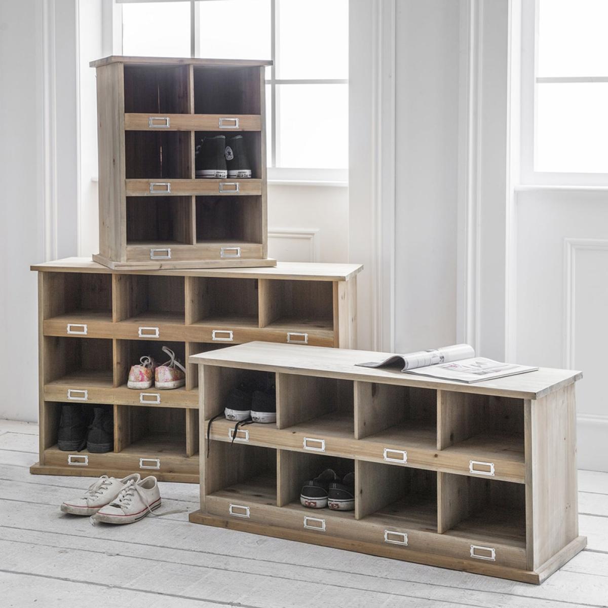 Inspired by traditional school lockers, the Chedworth Wooden Shoe rack is the perfect storage solution for a busy family home. If you're fed up of tripping over endless shoes, trainers or boots this shoe storage cabinet boasts plenty of room; offering a neat and tidy solution for any hallway, porch or utility room. Available in a choice of 3 sizes with 6, 8 or 12 cubby holes - there is even space for the super organised to add labels to each cubby hole. Made from Fir and finished in a grey wash, this stylish shoe organiser will compliment any interior space.