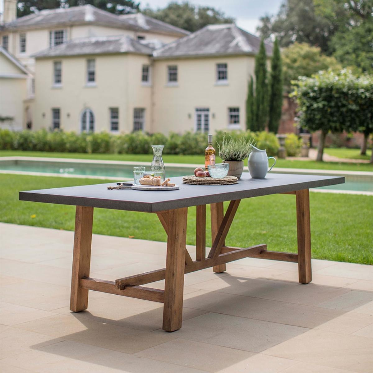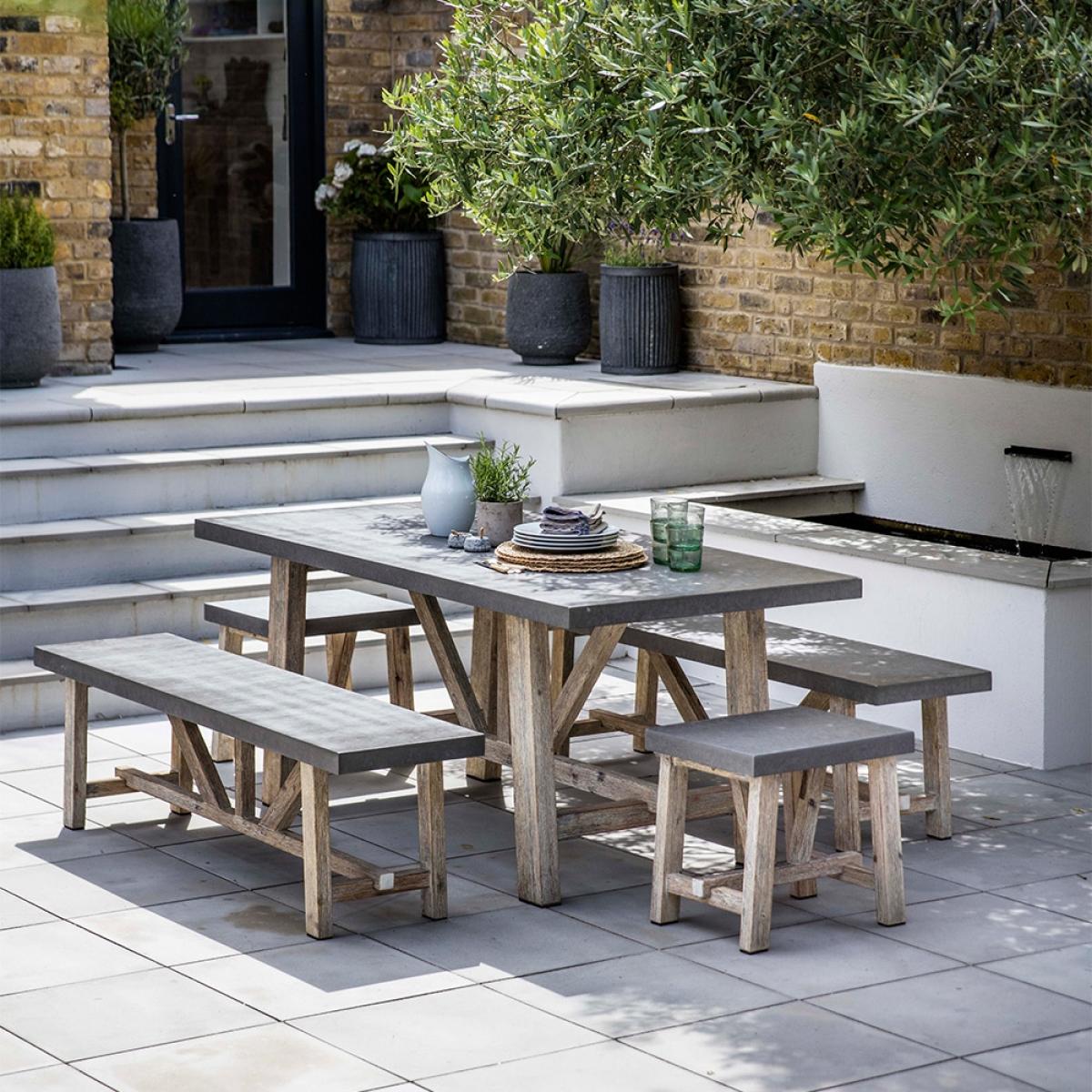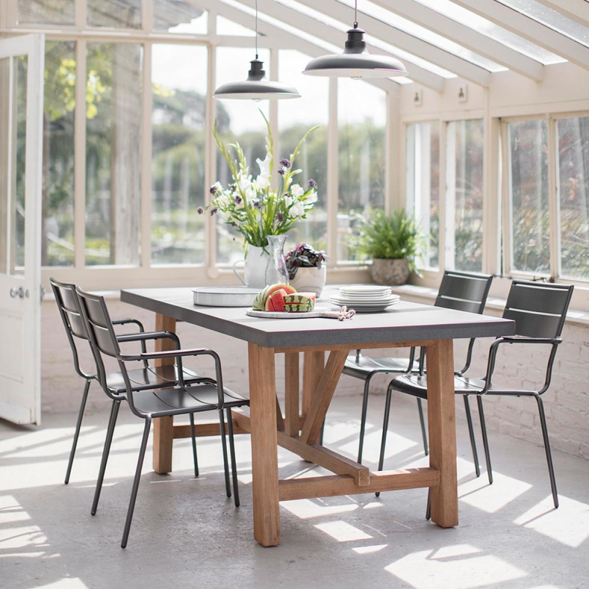 Perfectly pairing natural and industrial weatherproofmaterials, the Chilson Dining Table from Garden Trading would be suited to both indoor and outdoor spaces. Revive your kitchen or dining room with this contemporary styled table or place in the garden and enjoy feasting in the summer sun. Available in two sizes, small and large, there is a Chilson Table to suit your chosen space. Made with a gorgeous Acacia wood frame and boasting a distinctive cement fibre table-top, pair this stunning table with the Thurloe Chairs in Dark Grey and gather the family together for memorable mealtimes.