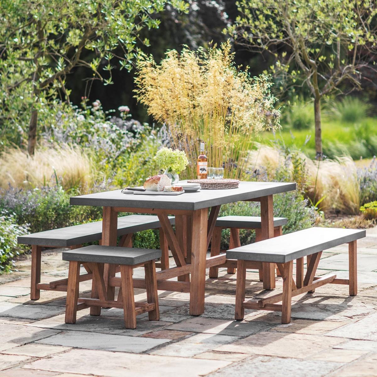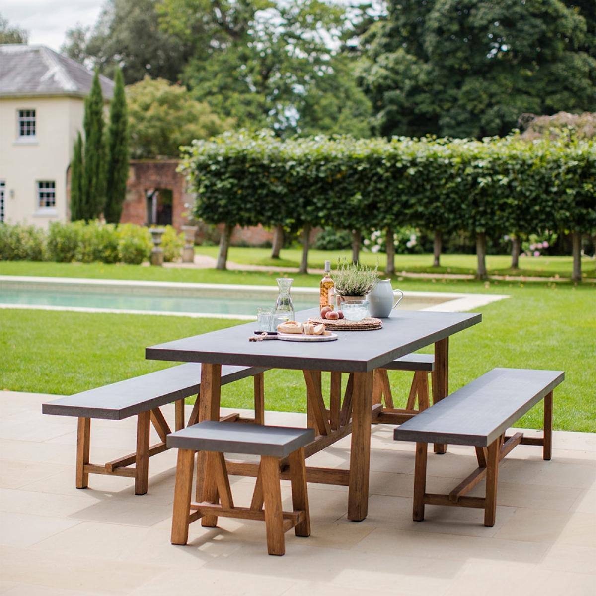 The Chilson Table, Bench and Stool Dining set from Garden Trading is bang on trend with its industrial finish, a great choice for anyone looking to add a touch of style to a kitchen or dining room, or outdoor dining furniture which oozes contemporary design. With tops made from cement fibre, giving a smooth, clean look, to the acacia wood frames and legs, this outdoor table and bench set beautifully marries the natural with the industrial. With two sizes available, Small and Large, there is a dining set for any outdoor space. For other wonderful garden furniture, see more here at Cuckooland!.