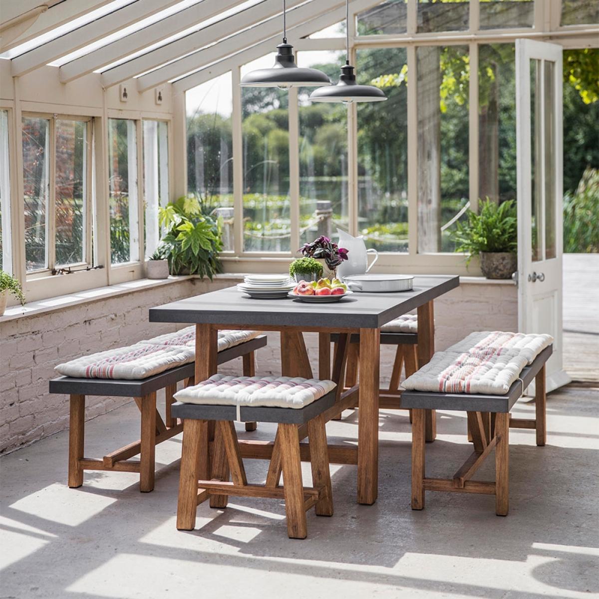 The Chilson Table, Bench and Stool Dining set from Garden Trading is bang on trend with its industrial finish, a great choice for anyone looking to add a touch of style to a kitchen or dining room, or outdoor dining furniture which oozes contemporary design. With tops made from cement fibre, giving a smooth, clean look, to the acacia wood frames and legs, this outdoor table and bench set beautifully marries the natural with the industrial. With two sizes available, Small and Large, there is a dining set for any outdoor space. For other wonderful garden furniture, see more here at Cuckooland!.