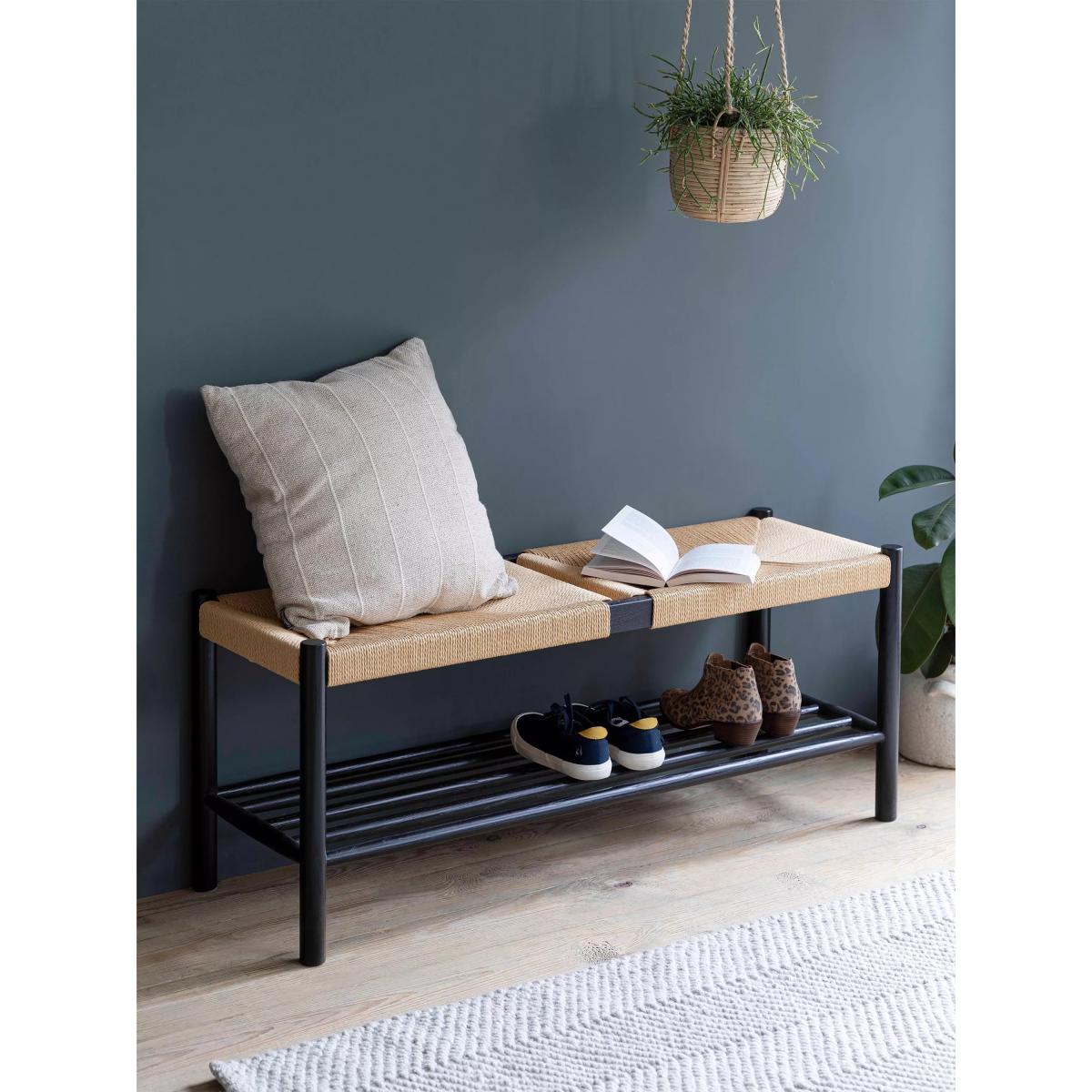 I really like this bench because it combines practical functionality with a sleek, modern aesthetic. The black frame paired with the natural wooden top makes it versatile enough to work in a variety of interiors, from contemporary hallways to more rustic or industrial settings. It’s ideal for placing near an entrance for quick seating or as a surface for dropping keys and bags, and the lower shelf offers extra storage or display space. When styling, consider pairing it with earthy tones and textured accessories like woven baskets or ceramic vases to enhance its natural appeal. Its clean lines and sturdy construction make it a reliable choice for both aesthetic impact and everyday use.