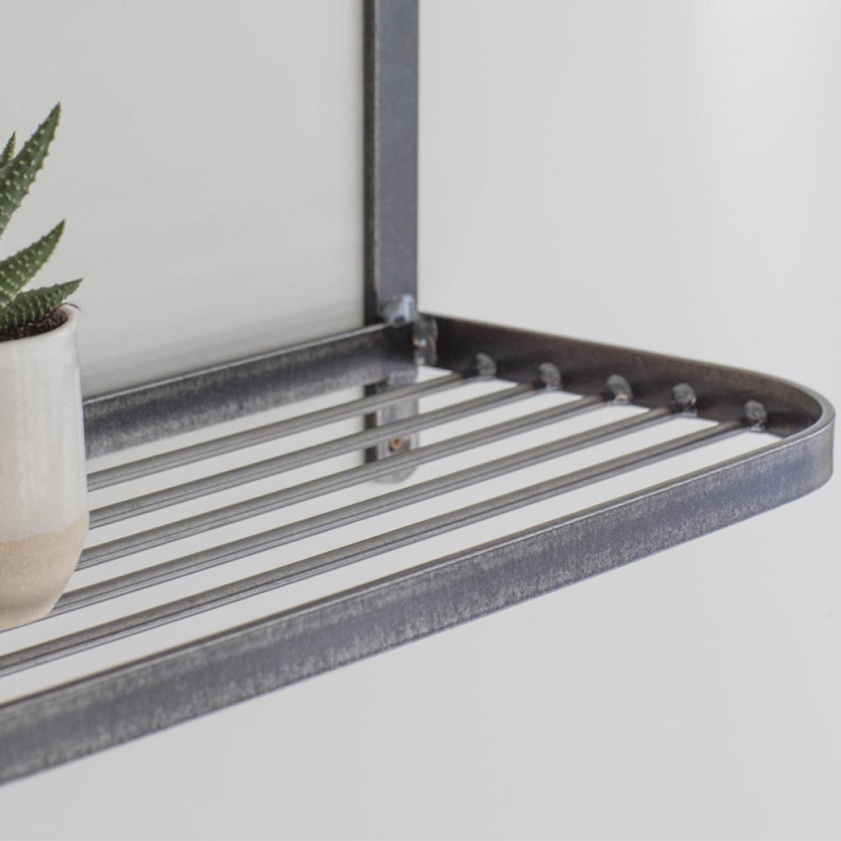 Crafted in a mix of Steel rods and banding, the Farringdon Double Wall Shelf is finished with a matt lacquer seal, protecting the metal yet not distracting from the striking welding marks. We've designed the edging with a practical small lip to avoid items falling off. Taking inspiration from old fashioned railway carriage shelving, this wall unit has been kept simple lending itself to being used in a range of homes. Store in the kitchen for baking accessories or herb pots, toiletries and hand towels in the bathroom or books and plants in the living room. Dimensions: H: 40 x W: 70 x D: 20.5 cm Materials: Steel with Matt Lacquer Seal Assembly Required: No Care Instructions: Clean with a clean damp cloth. No bleach or harsh abrasives Additional Information: Indoor use only. Welding marks will be visible due to the nature of the material and manufacture. Wall fixings not supplied. We recommend this items is fixed to solid masonry walls.