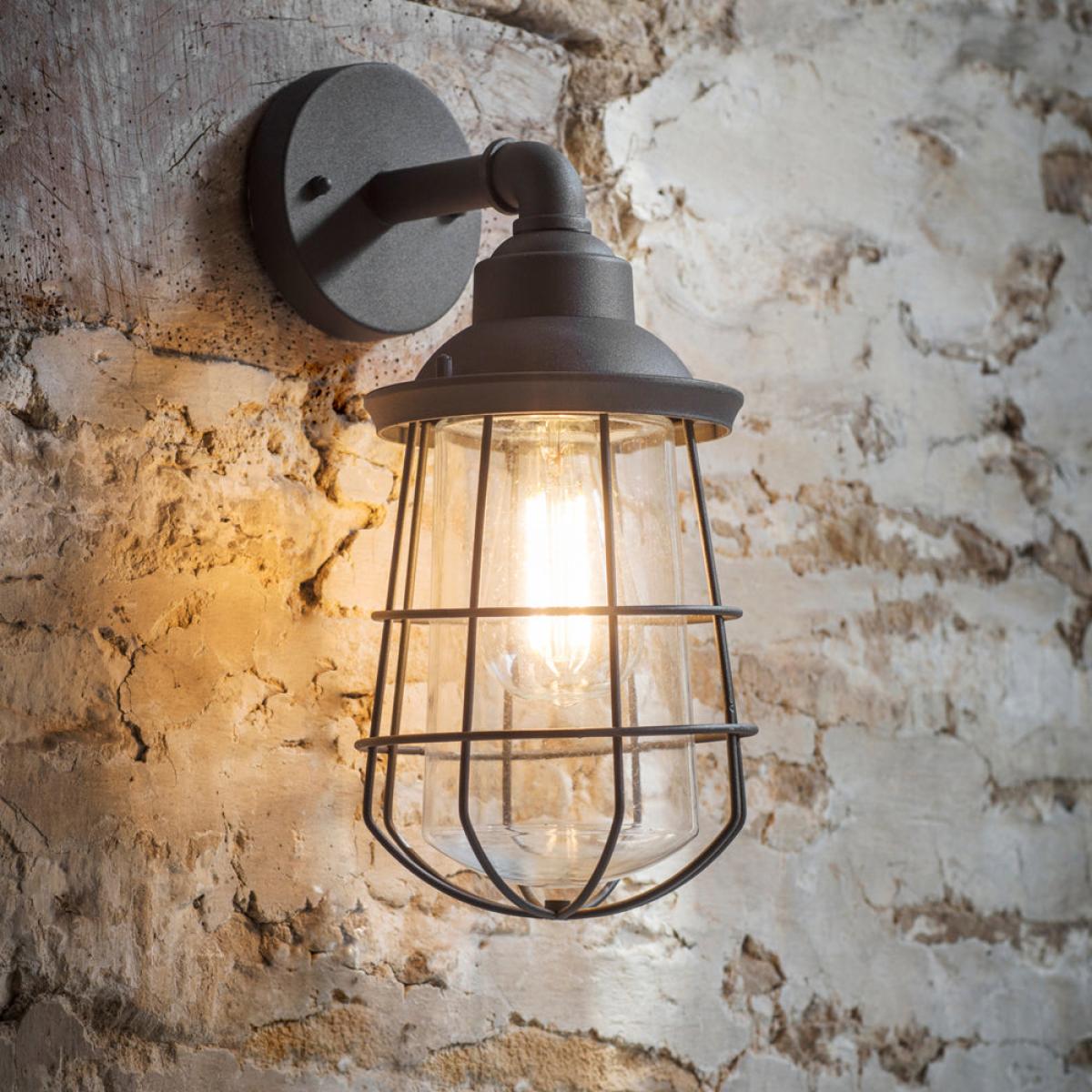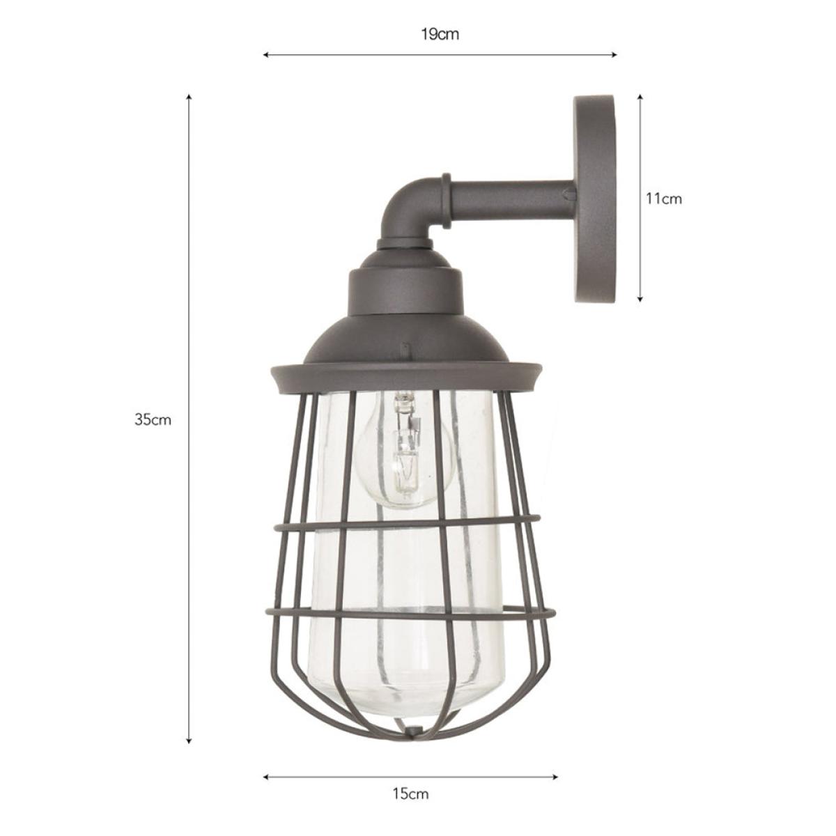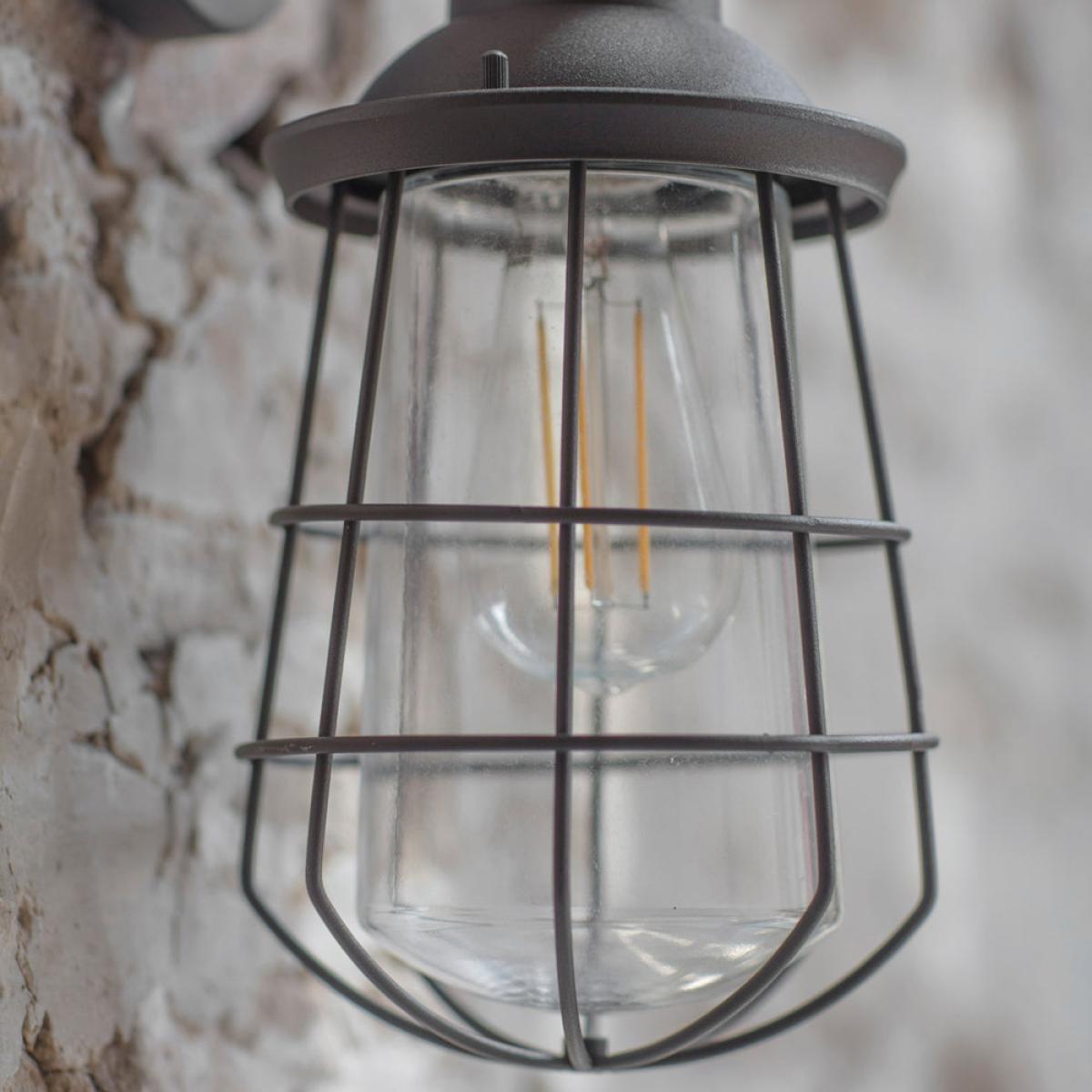 The striking caged design of the Finsbury Wall Light makes it a popular choice when updating outdoor lighting. The industrial element of the piping style arm offers a unique and eye-catching design. View More. The striking caged design of the Finsbury Wall Light makes it a popular choice when updating outdoor lighting. The industrial element of the piping style arm offers a unique and eye-catching design aspect. Named after the sophisticated area of Finsbury in London, the exterior light would suit both classic townhouses and contemporary apartments. Crafted in Powder Coated Steel, the matt texture has been finished in our Charcoal colourway. The soft mid-tone grey has been extremely popular throughout our outdoor lighting ranges and is a unique update with the caged base. Designed with an E27 bulb holder, we think it would look striking used with a Squirrel Cage bulb. Please note that due to export restrictions we are not currently able to deliver this product to mainland Europe.