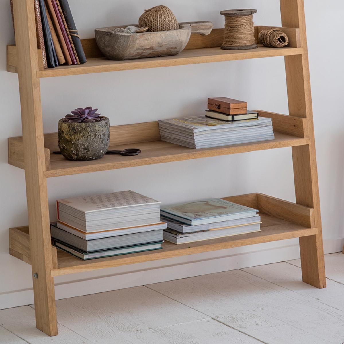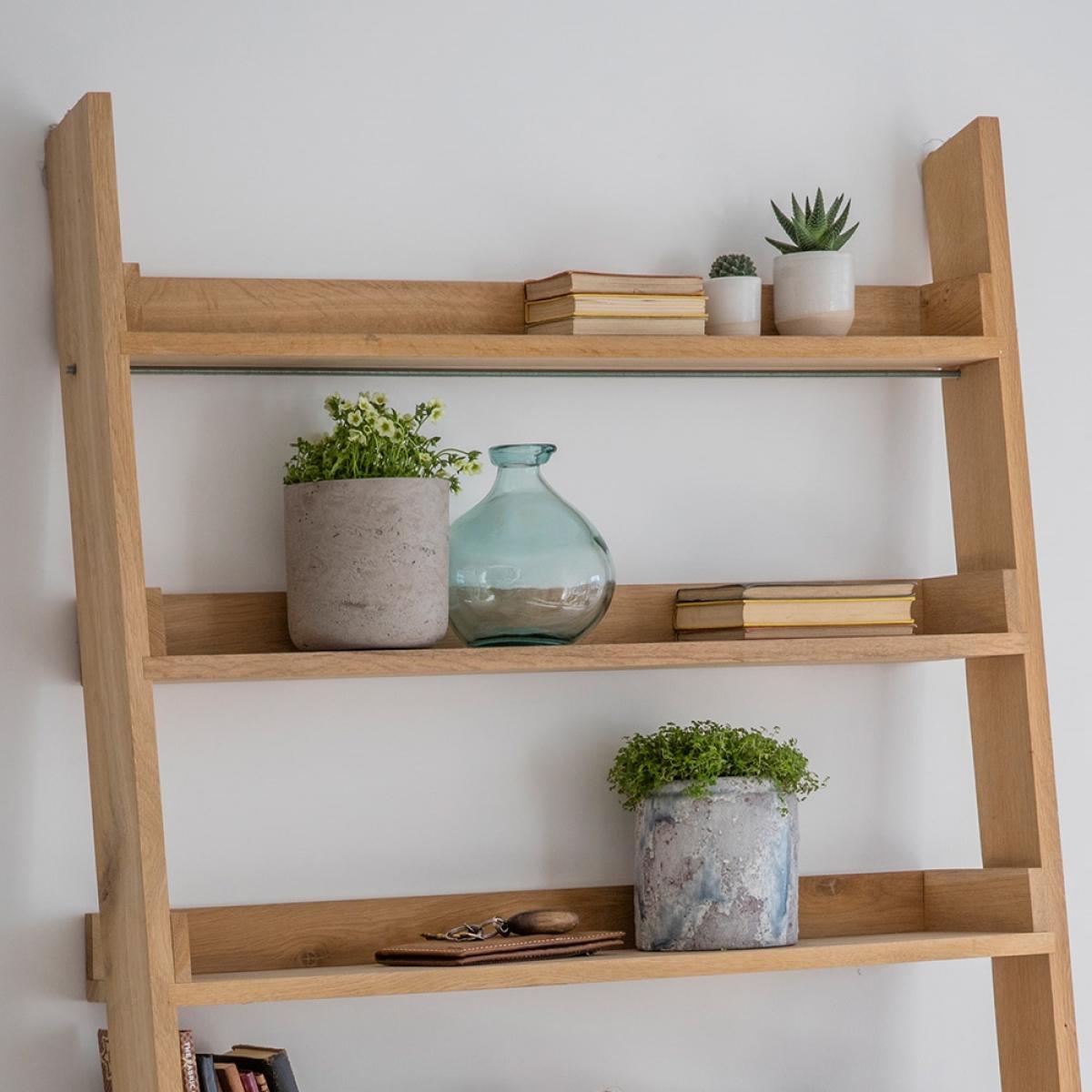 The Hambledon Wide Oak Ladder Shelf is a quirky and unique take on the traditional stepladder and provides valuable storage with a modern twist. This rustic shelving unit has 6 wide shelves offering up plenty of space for you to pop your favourite books, photos and knickknacks. Manufactured from raw oak that has been responsibly sourced from sustainable forests the natural characteristics of the wood give this ladder an individual feel. With its simple design, you’ll find that it seamlessly fits into any living space, complementing or matching any interior style. Complete with safety straps simply prop this ladder shelf up against any wall for a contemporary and impressive feature, adding a burst of originality to a living room, study or hallway.
