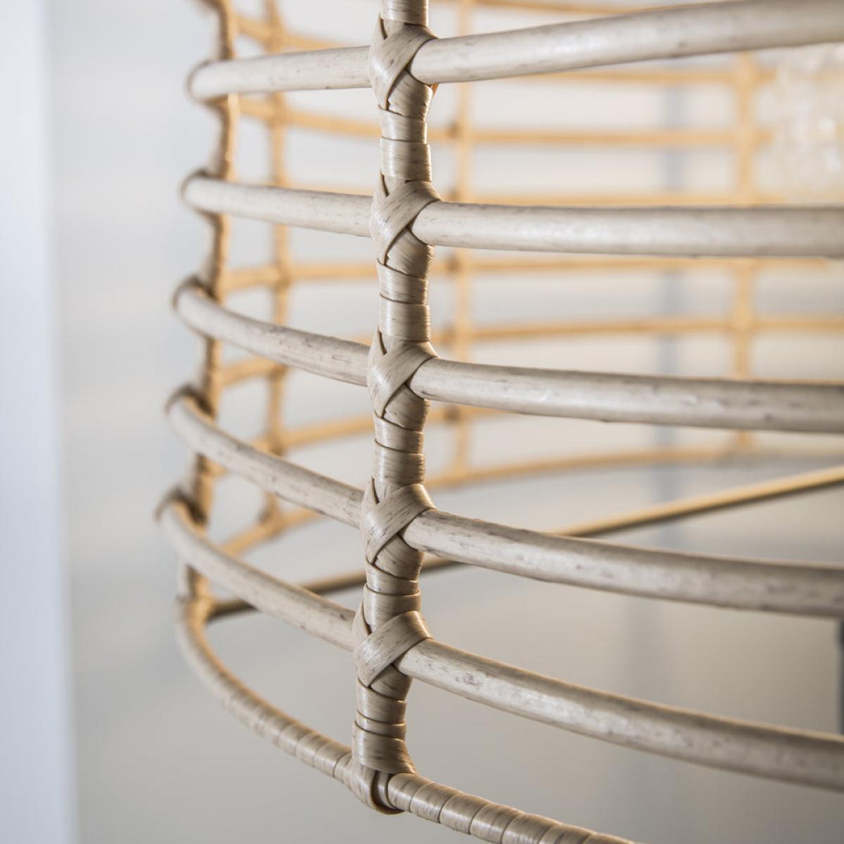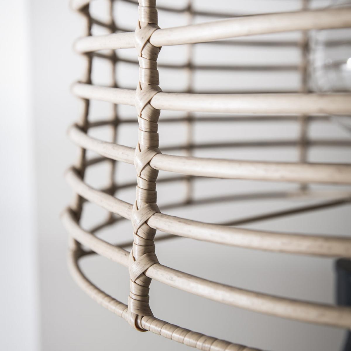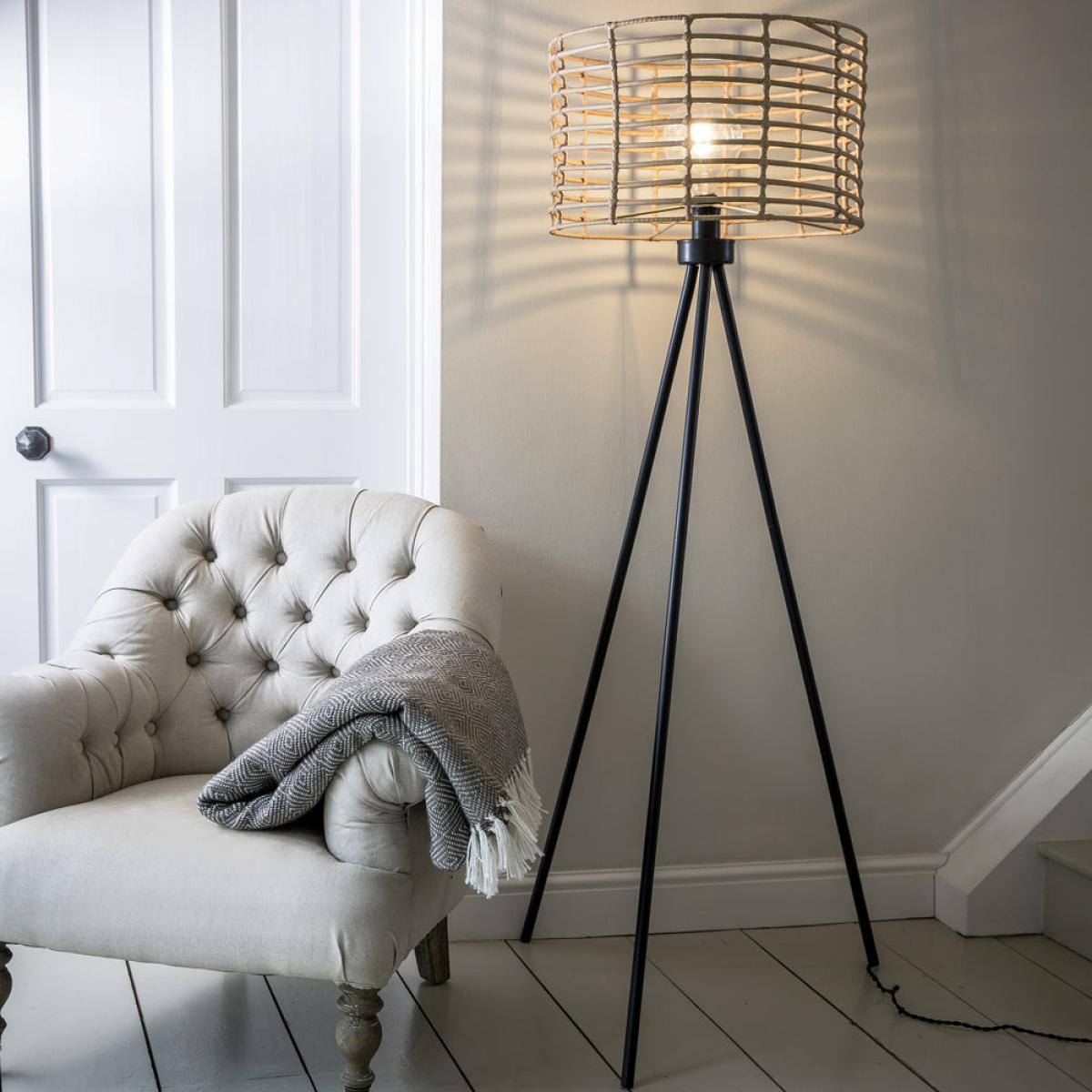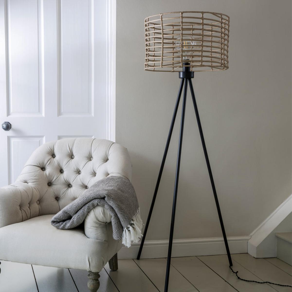 Add a Scandinavian touch to a vacant corner of the home with the Hampstead Floor Light. The Carbon coloured tripod style legs have been juxtaposed with the oversized handmade shade. The circular c. View More. Add a Scandinavian touch to a vacant corner of the home with the Hampstead Floor Light. The Carbon coloured tripod style legs have been juxtaposed with the oversized handmade shade. The circular cage metal frame has been wrapped with intricate strips of PE Bamboo, to create a tight weave appearance matching in style to our Hampstead furniture collections. The indoor light comes with a 2. 5 metre cable and is designed to house an E27 bulb which looks striking when matched with one of our Globe filament LED's. Materials: Powder Coated Steel, PE Bamboo. Assembly Required: No. Care Instructions: Dust with a clean, lint free, dry cloth. No harsh abrasives. Additional Information: Indoor use only. Not tested for use in bathrooms. Requires 1 x E27 bulb Max 10W LED - not included. Compatiable with dimable bulbs.