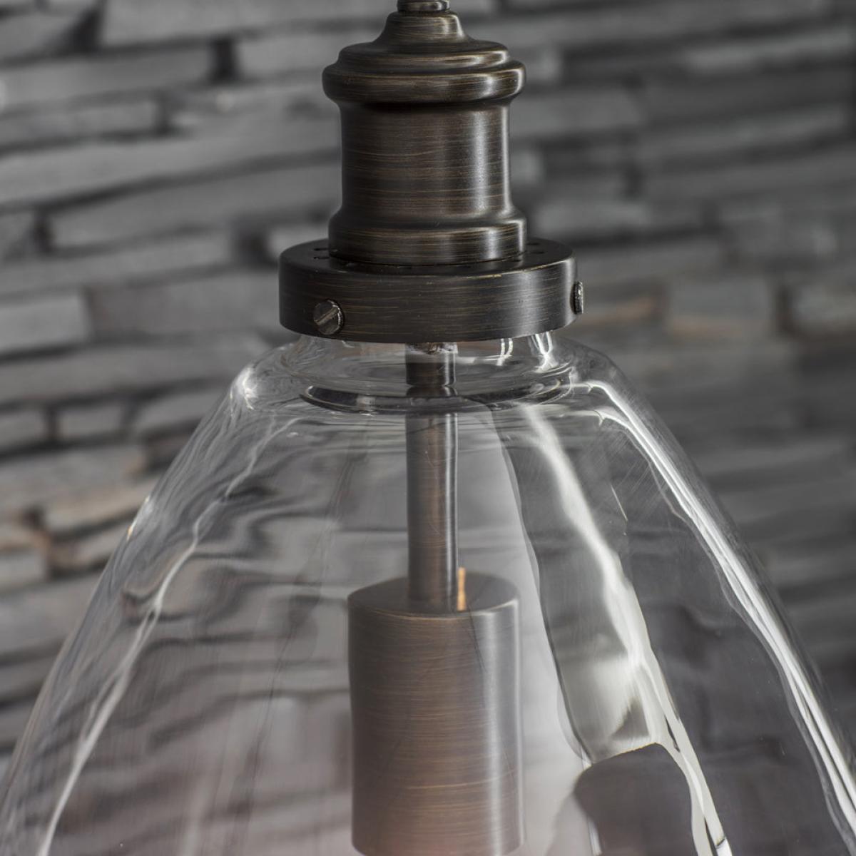 Materials: Glass, Steel Assembly Required: No Care Instructions: Dust with a clean, lint free, dry cloth. No harsh abrasives Additional Information:Indoor use only. Not tested for use in bathrooms. Requires 1 x E27 bulb Max 10W LED - not included. Compatiable with dimable bulbs. We recommend this light be hung from strong ceilings due to the size and weight (2kg). Due to the glass material some air bubbles maybe visible within the shade. This is unavoidable, yet it doesn't affect the functionality of the light.