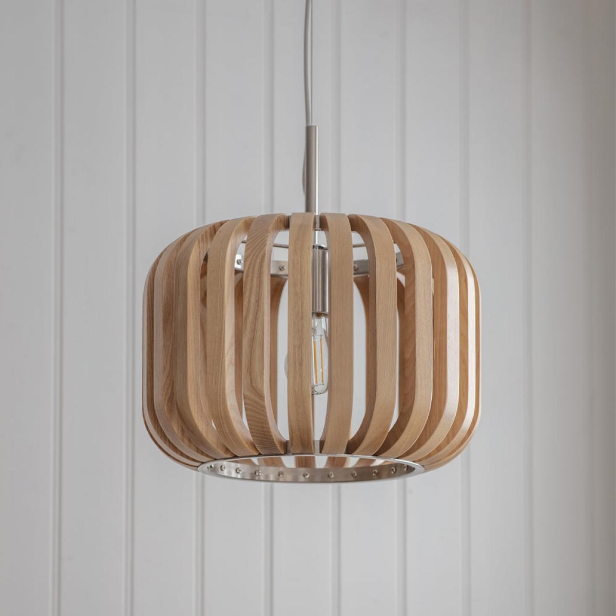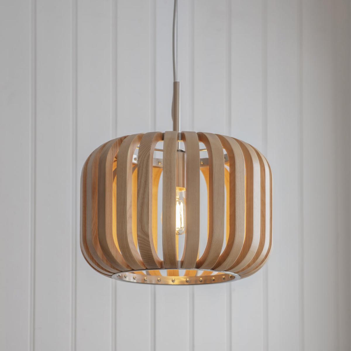 Create a striking focal point in the dining room, kitchen or bedroom with the Kingston Pendant Light crafted from beautiful curved ash wood. Dimensions: H: 120 x W: 35 x D: 35 cm Cable Length: 93cm. View More. Create a striking focal point in the dining room, kitchen or bedroom with the Kingston Pendant Light crafted from beautiful curved ash wood. Materials: Ash, Steel. Assembly Required: No. Care Instructions: Dust with a clean, lint free, dry cloth. No harsh abrasives. Additional Information: Indoor use only. Not tested for use in bathrooms. Requires 1 x E27 bulb Max 10W LED - not included. Compatible with dimmer switches and dimmable bulbs.