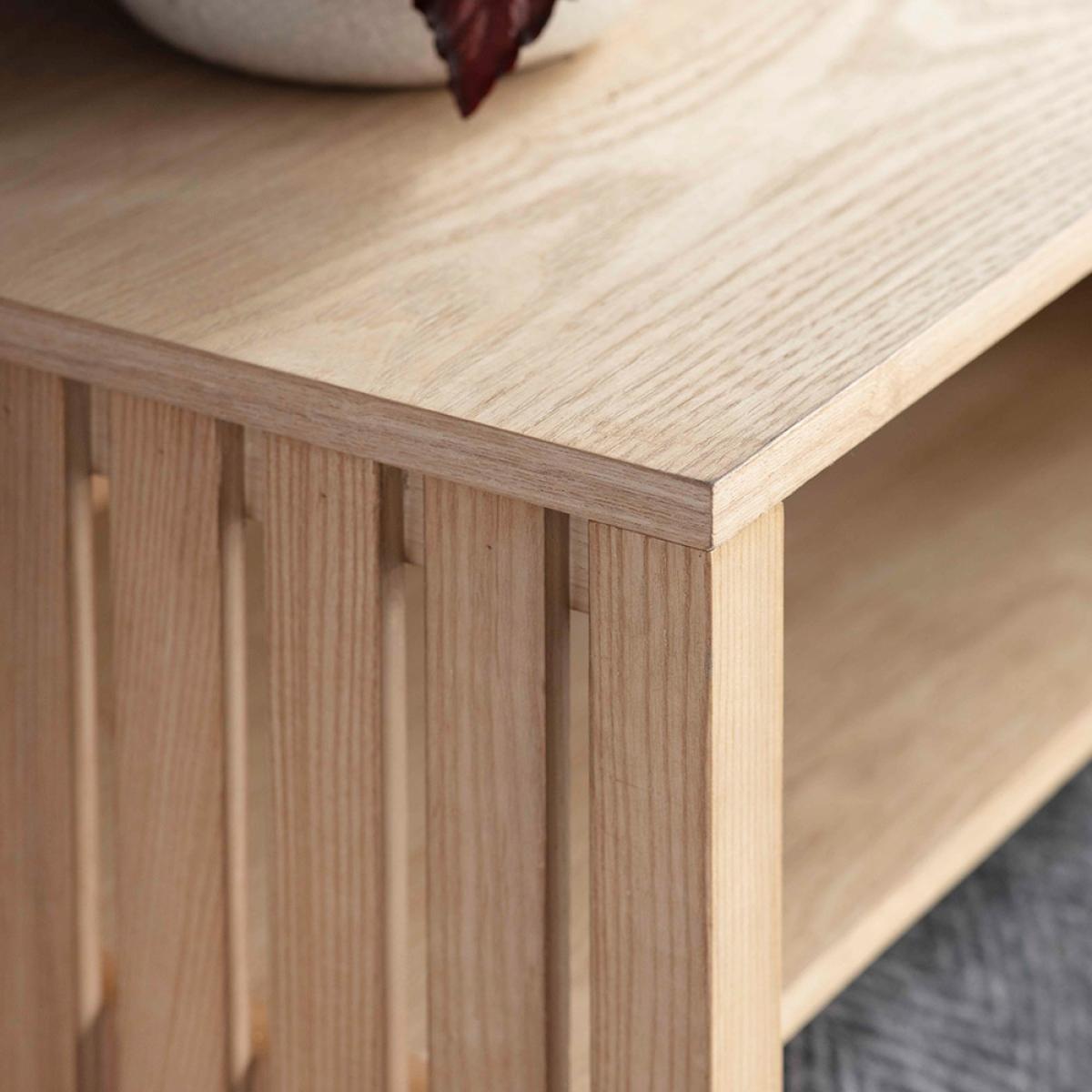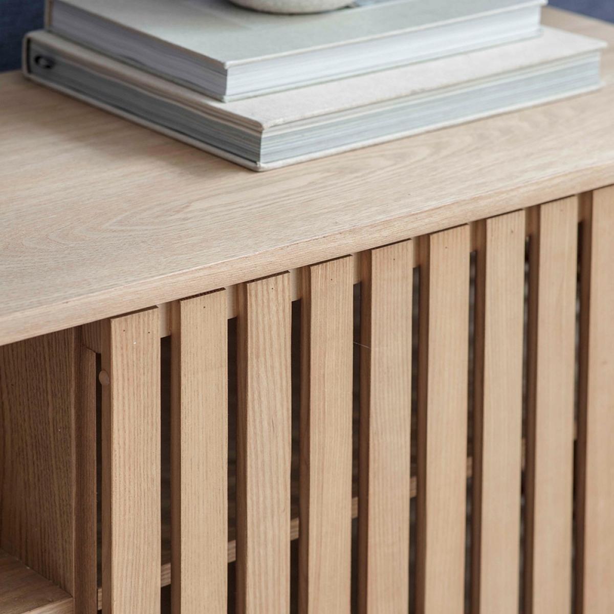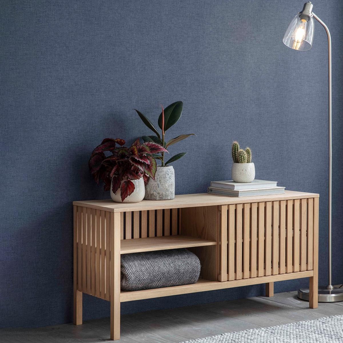 Create a calm and zen space with the Garden Trading Linear Sideboard. With its minimalist design and light ash finish, this piece will be perfect for storing away all of those bits & bobs that clutter up your room. With the clever sliding doors, you can choose to hide away the clutter on one side and display the open shelving on the other! Styled in the living room it'll be great for storing cosy blankets and throws ready for when the nights start to get a little chilly. You could even use it as a media unit to pop your tv on, the possibilities are endless!.