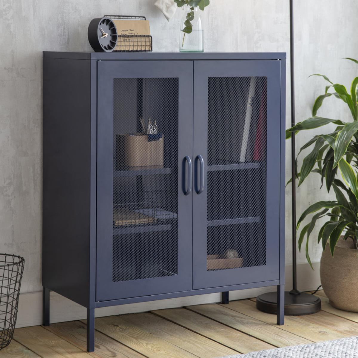 Keep your home office ordered, organised and clutter free with our vintage inspired Marlborough Cabinet. Designed with three internal shelves of varying heights, to store all your study essentials in one neat place. Dimensions: H: 101.5 x W: 80 x D: 40 cm Materials: Powder Coated Steel Assembly Required:Yes Care Instructions: Clean with a clean damp cloth. No bleach or harsh abrasives Additional Information: Indoor use only. Avoid placing on uneven surfaces. Take care when placing sharp objects on the locker as they may scratch the surface