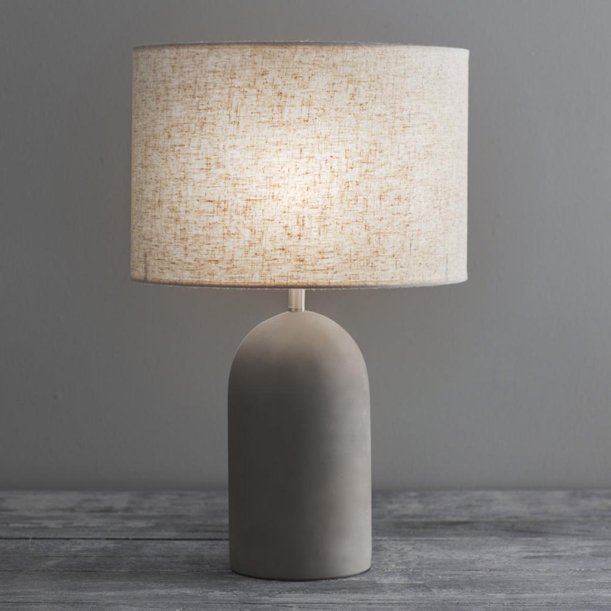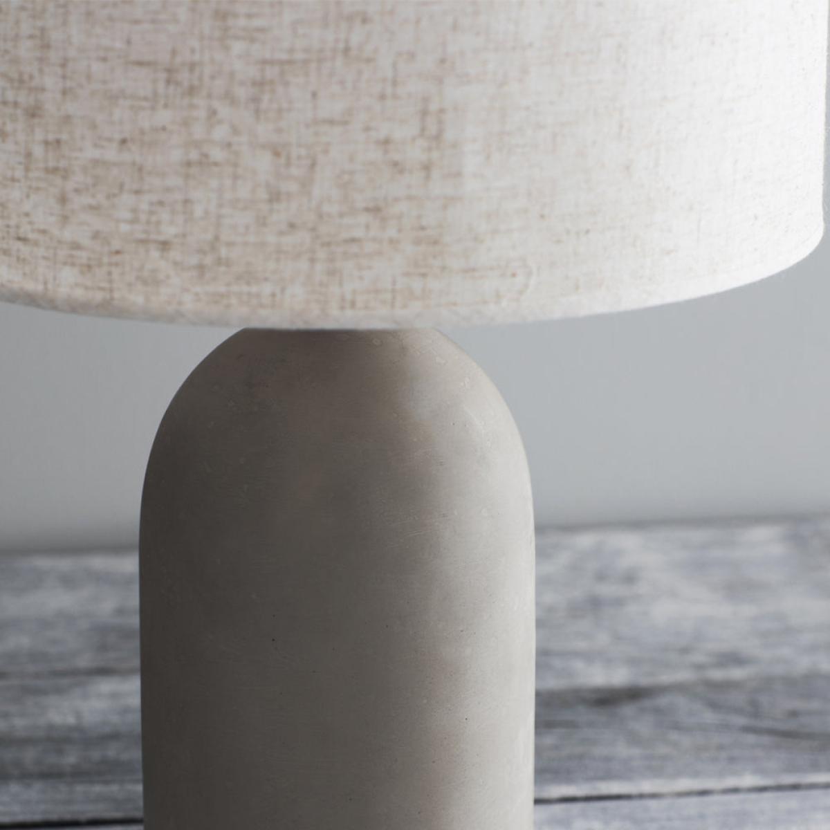 The Millbank Bullet Table Lamp is perfect for adding an industrial touch to any indoor space. Crafted from Polymer Concrete the base is heavy yet soft to touch. Keeping it unpolished we allow for t. View More. The Millbank Bullet Table Lamp is perfect for adding an industrial touch to any indoor space. Crafted from Polymer Concrete the base is heavy yet soft to touch. Keeping it unpolished we allow for the natural flecks and markings to show through. The grey colouring of the base works perfectly alongside the Linen shade in Biscuit, which has specks of grey and brown woven within the material. Here at Garden Trading we love to use unconventional materials that will bring an eye-catching element to the home. Designed with a soft radius, this table light will add a sense of calmness to the room, and would work beautifully in contemporary and traditional homes.