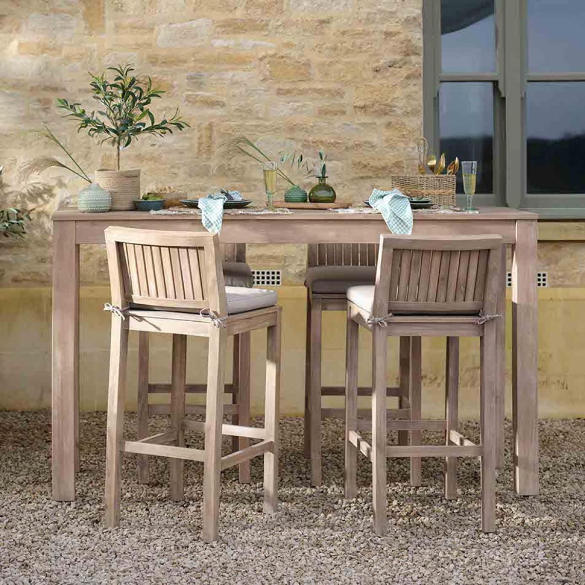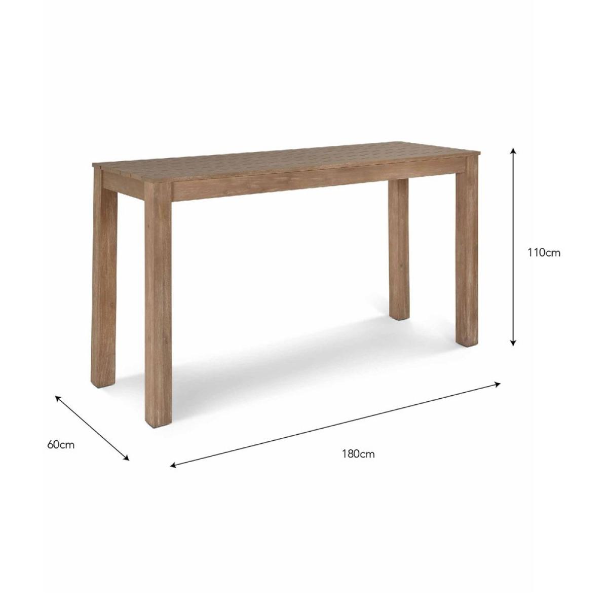 Create an envy-worthy outdoor entertainment space with the Garden Trading Porthallow Rectangular Bar Table in Natural. This stylish bar table elevates any patio or decking area, providing the perfect spot for morning coffees or evening cocktails. Crafted from solid Acacia, it combines durability with elegance, making it a must-have for outdoor gatherings. Trust in its high-quality construction and commitment to value, ensuring both functionality and style for your outdoor space. Dimensions: H: 110 cm x W: 180 cm x D: 60 cm