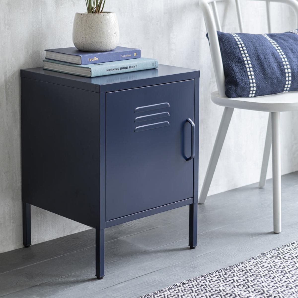 A low console with a vintage locker feel, the left sided Small Marlborough Storage Locker is ideally suited to slotting neatly into studies, bedrooms and hallways. Available in our classic Ink and Lily White colourways, the locker is designed with two internal shelves to keep contents organised and clutter hidden away. Please note that the door can only be installed to open one way. Dimensions: H: 59 x W: 42.5 x D: 40 cm Materials: Powder Coated Steel Assembly Required:Yes Care Instructions: Clean with a clean damp cloth. No bleach or harsh abrasives Additional Information: Indoor use only. Avoid placing on uneven surfaces. Take care when placing sharp objects on the locker as they may scratch the surface. Handle on the right. Door opens on the left. Door can only be installed on the one side.