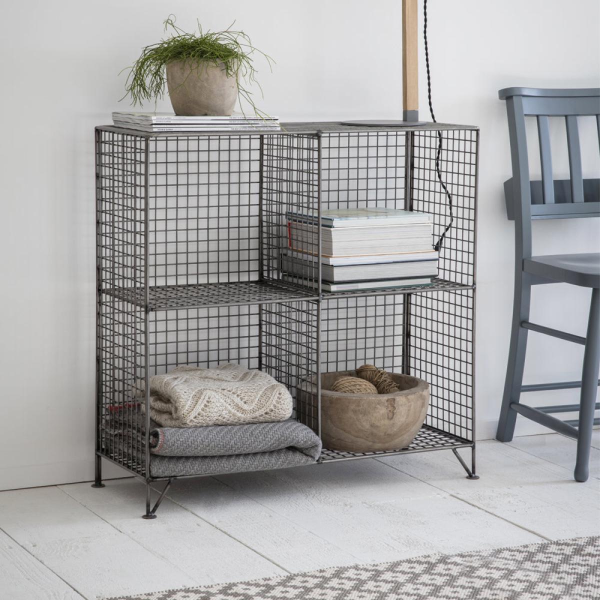 Style and organise your store with the Portobello Shelving Unit. Crafted from soft metallic grey Mesh, this sturdy unit includes equal shelves and would look striking in a range of shops, from small boutiques, garden centres, homeware stores and more. This display unit offers an industrial way to merchandise your stock, whatever the style of your business. It could be positioned as a standalone piece to hold small pickup items for customers, or alternatively why not purchase a pair or trio to line along a wall to catch your customers eye as they enter the store. Dimensions: H: 79 x W: 79 x D: 30 cm Materials: Mesh Assembly Required: No Care Instructions: Clean with a clean damp cloth. No bleach or harsh abrasives Additional Information:Indoor use only. Feet have round discs for stability.