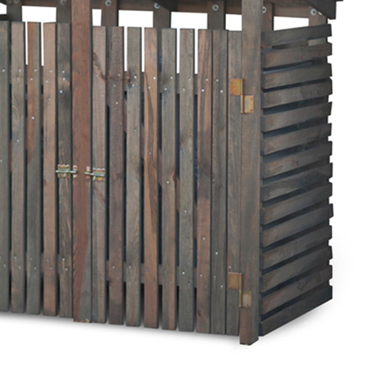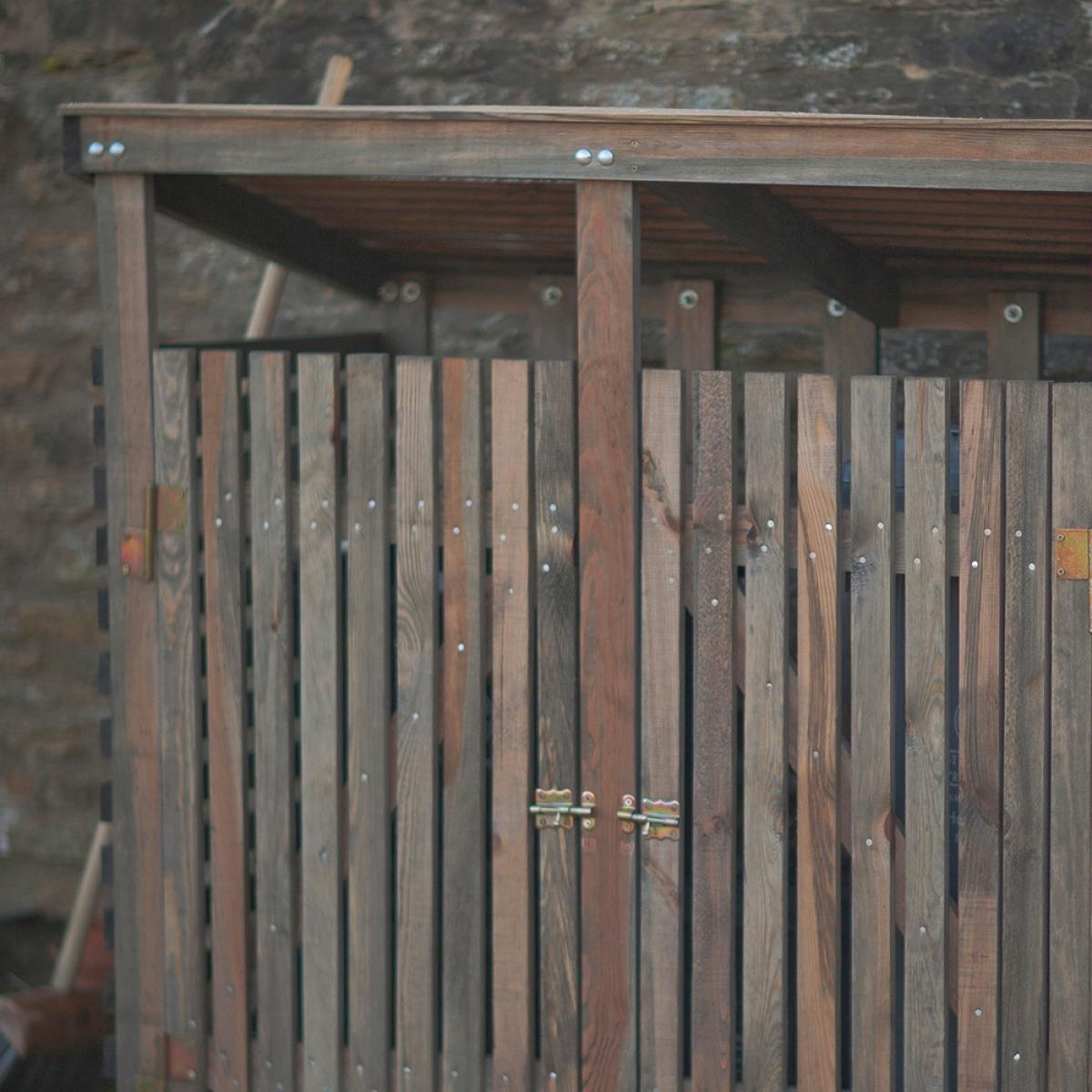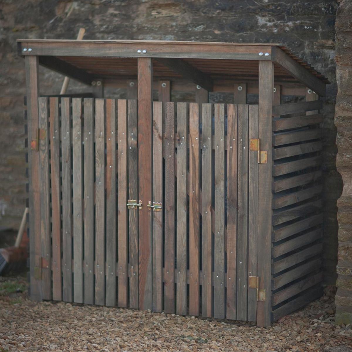 Keep your wheelie bins out of sight with this attractive Wooden Double Wheelie Bin Storage, from Garden Trading, a sturdy construction made from stained spruce that has been responsibly sourced from the EU. No more staring out of your kitchen window at the ugly rubbish bins. They will be beautifully camouflaged inside this garden store. Fully weatherproof, it has a door bolt on the right hand side for easy access when you need to pop your bins out for collection. This wheelie bin cover comes flat packed and includes instructions, ready for self assembling.