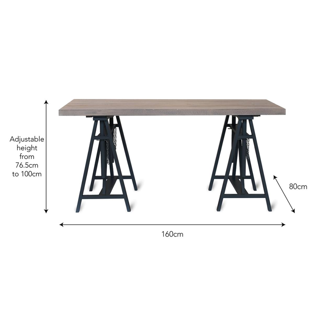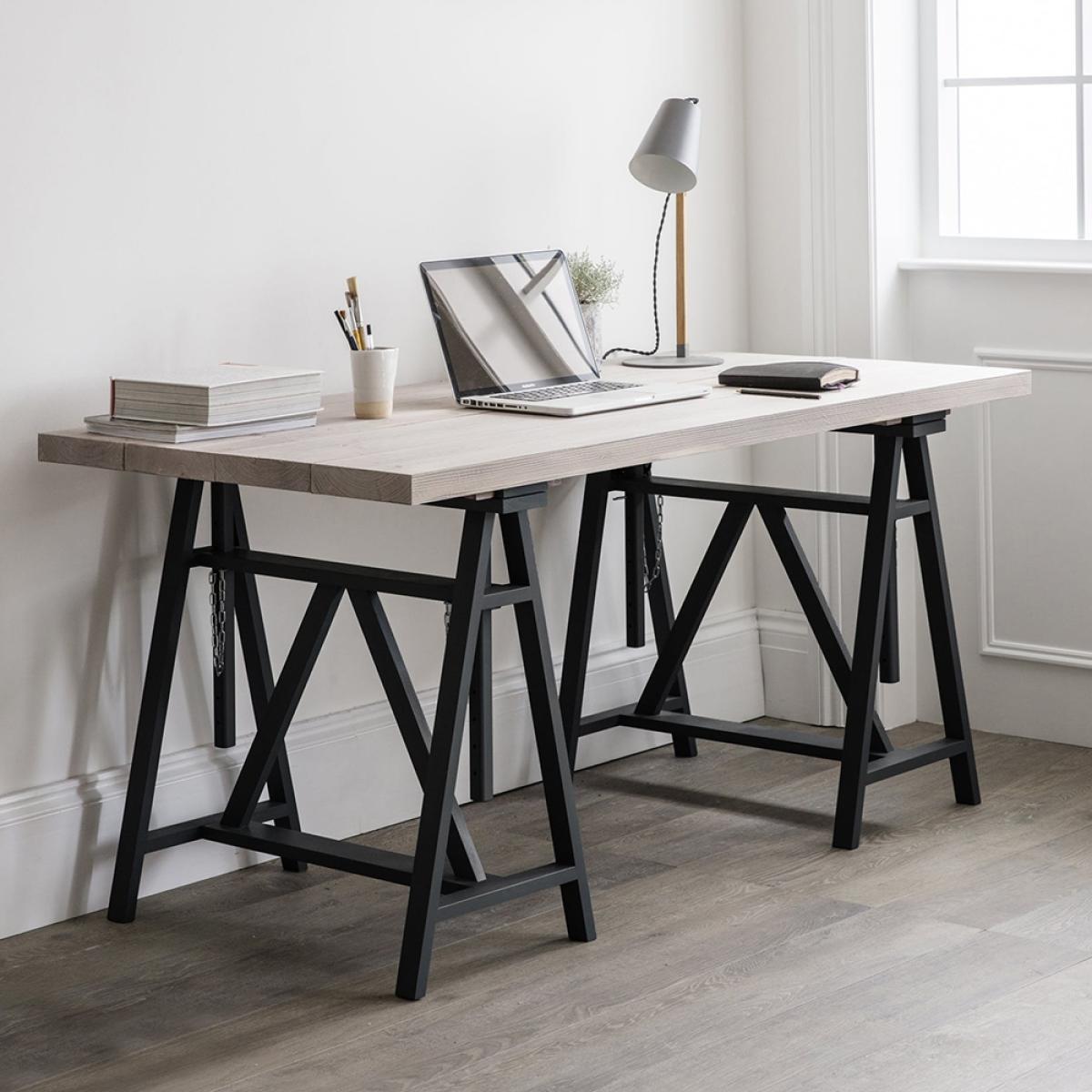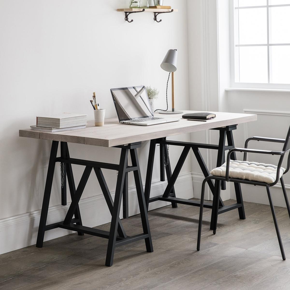 Inspired by classic architect's tables, the Workshop Trestle Desk from Garden Trading is sure to keep you feeling motivated while you're hard at work. The solid natural spruce top has been sanded back and then coated with a grey protective wax wash to enhance the wood grain creating an attractive rustic finish. Supporting the gorgeous wooden top are two trestle table legs both made from Beech wood and finished in carbon to give this unit a contemporary twist. With a width of 160cm there's plenty of room for all of your office essentials, including stationery, files, laptop and lamp! With an adjustable height feature, set the table at a level that's most comfortable for you. Offering a stylish selection of office chairs here at Cuckooland, complete the look and revamp your home office!.