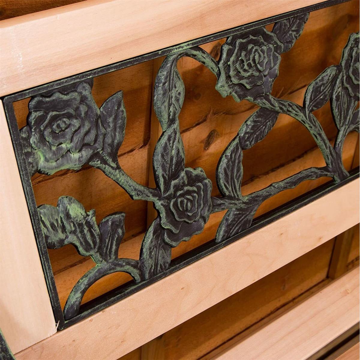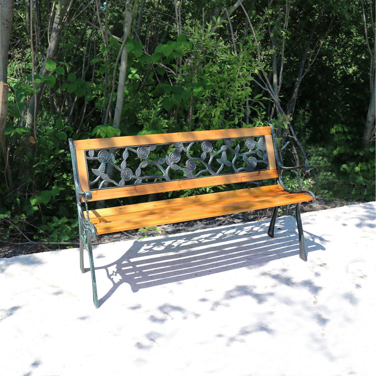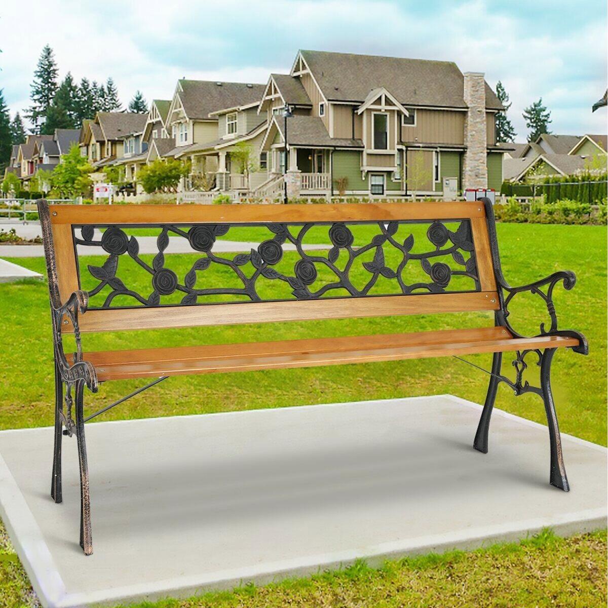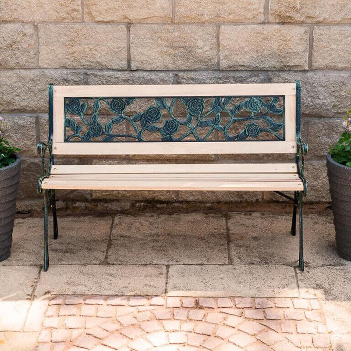 Bring some style and practicality to your outdoor space and provide your friends, family, and yourself somewhere comfortable to sit with this 3 Seater Garden Bench. Enjoy some alone time or a catch up with friends as you relax on this sturdy, durable, and weather resistant wooden garden bench. Perfect for when you need a place to sit in your garden, on your patio, or on your balcony, this bench is the ideal addition in the spring and summer. With a traditional build and stunning antique rose design to the rear, this bench looks beautiful when not in use, making a striking addition to any outdoor space. The sides and arms of this attractive 3 seater bench are made from heavy duty cast iron which is weather resistant and durable, able to hold up plenty of weight (up to three adults) and looks modern and stylish in your garden. You will need to assemble your new garden bench but with the simple to follow instructions, construction is quick and easy so you can enjoy your new bench as soon as possible!The slats of this outdoor bench are made from solid hardwood which is long lasting and able to withstand a lot of weather such as rain and snow. They're untreated so if you want to help them last even longer, you can apply a few coats of your favourite wood varnish to protect them