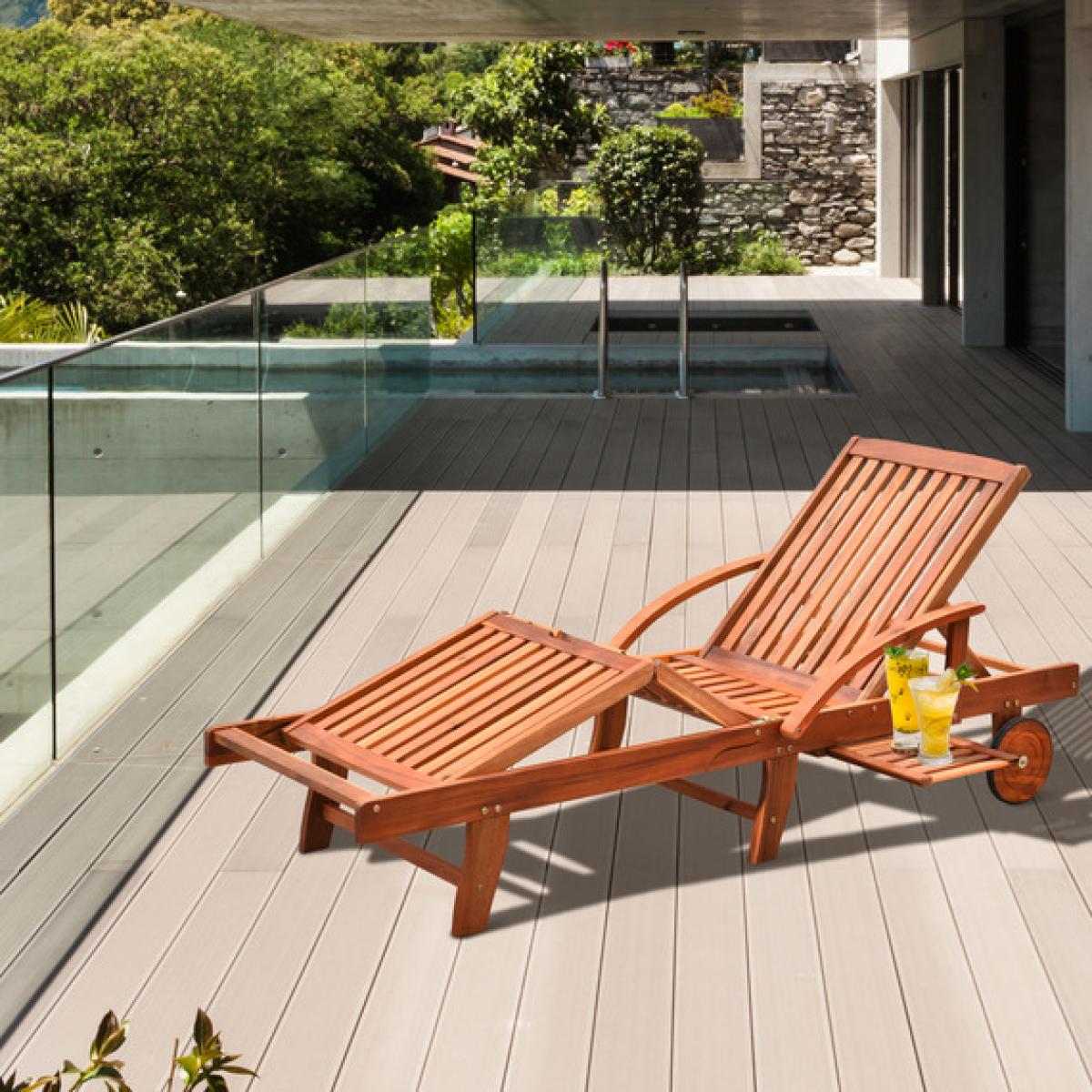 Quite simply put, there's no better way to enjoy the sun at its best than with this lounger from Outsunny. Using sustainably source acacia wood for durability and resilience against weather damage, it is crafted into a classic lounger design, with both the lower half and back adjusting to different positions for you to be in control of how you lie or sit, with a pull-out side table for a convenient place to keep anything you need near. Slatted all over to prevent water build-up to help prevent damage to the wood, this piece is finished with two wheels on the front for it to move around easily, with the frame fully folding into itself for easy lifting and storage. Simply fold out for hours of relaxation.